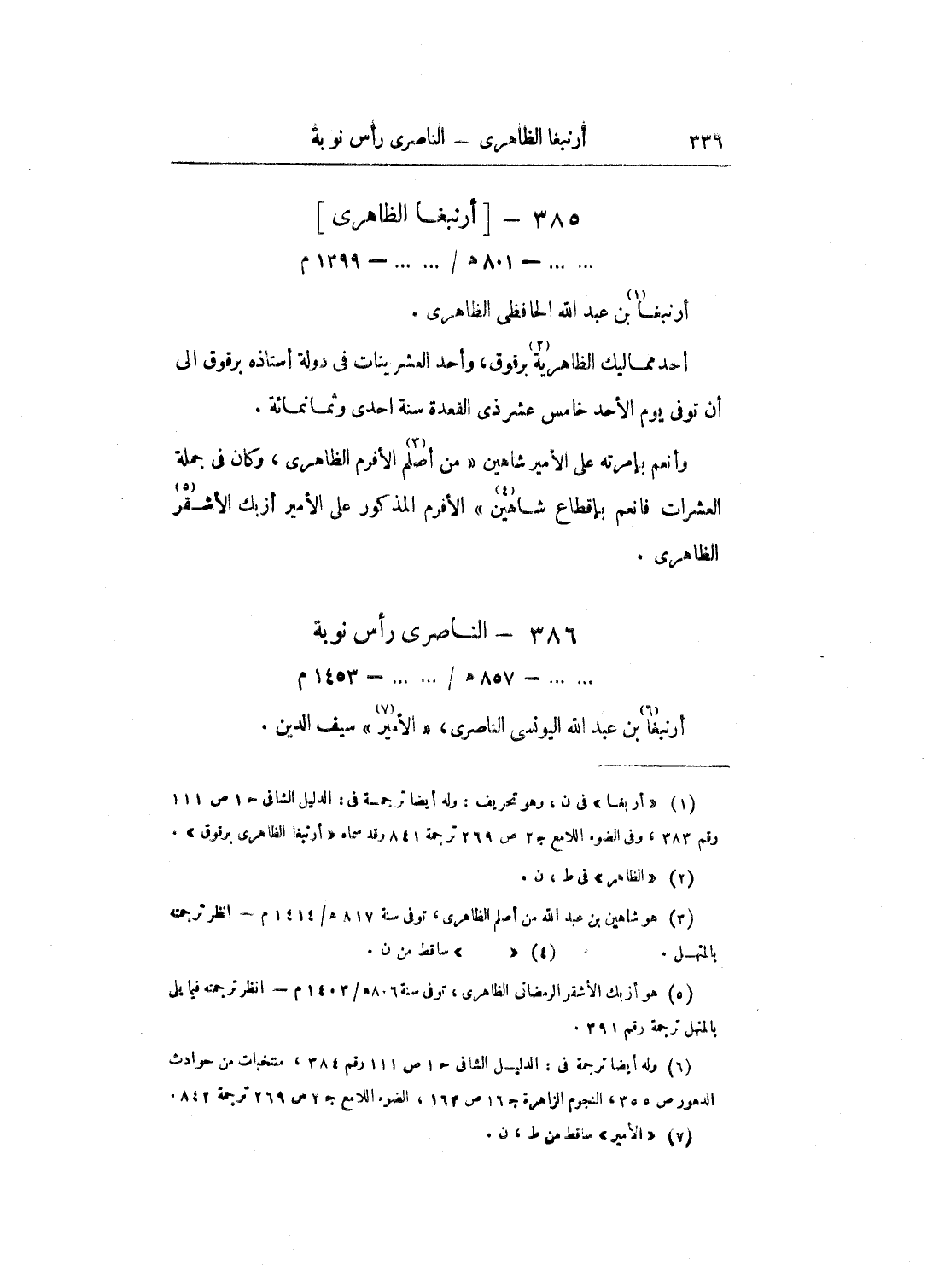 عبد الرحمن إلى نيابة دمشق بحكم عصيان الأمير تنبك البجاسي، وذلك في المحرم سنة سبع وعشرين وثمانمائة، فباشر المذكور الدوادارية بحرمة، وسار في الوظيفة عَلَى أجمل طريقة، هذا ومعه مثل الأمير جاني بك الأشرفي الدوادار الثاني عظيم الدولة الأشرفية، ومعظم الناس لا يتردد إلا إلى جانبك المذكور، وهو مع ذَلِكَ صاحب حرمة وناموس، وكلمته نافذة في الدولة، واستمر عَلَى ذَلِكَ إلى ليلة الخميس سادس ذي الحجة الحرام سنة إحدى وثلاثين وثمانمائة قبض عليه ونفى إلى القدس بطالا، وتوجه به الأمير قراقجا الحسني، أحد أمراء العشراوات ورأس نوبة، فتوجه إلى القدس وأقام به بطالا إلى أن مات في يوم الثلاثاء سادس عشر شهر ربيع الأول سنة ثلاث وثلاثين وثمانمائة.
