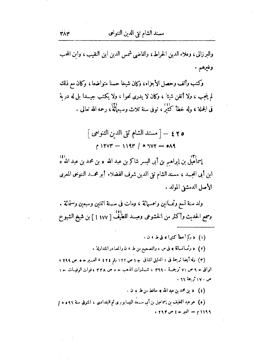 ومن مصنفاته مختصر الروضة للنووي، ومختصر الحاوي الصغير وشرحه، وكتاب عنوان الشرف الوافي، وهو كتاب حسن لم يسبق إلى مثله، يحتوي عَلَى فنون خمسة من العلوم، فإذا قرأت في كل شيء رمته عَلَى الانفراد، فأول السطور بالحمرة عروض، وما هو بعده بالحمرة أيضاً تاريخ دولة بني رسول