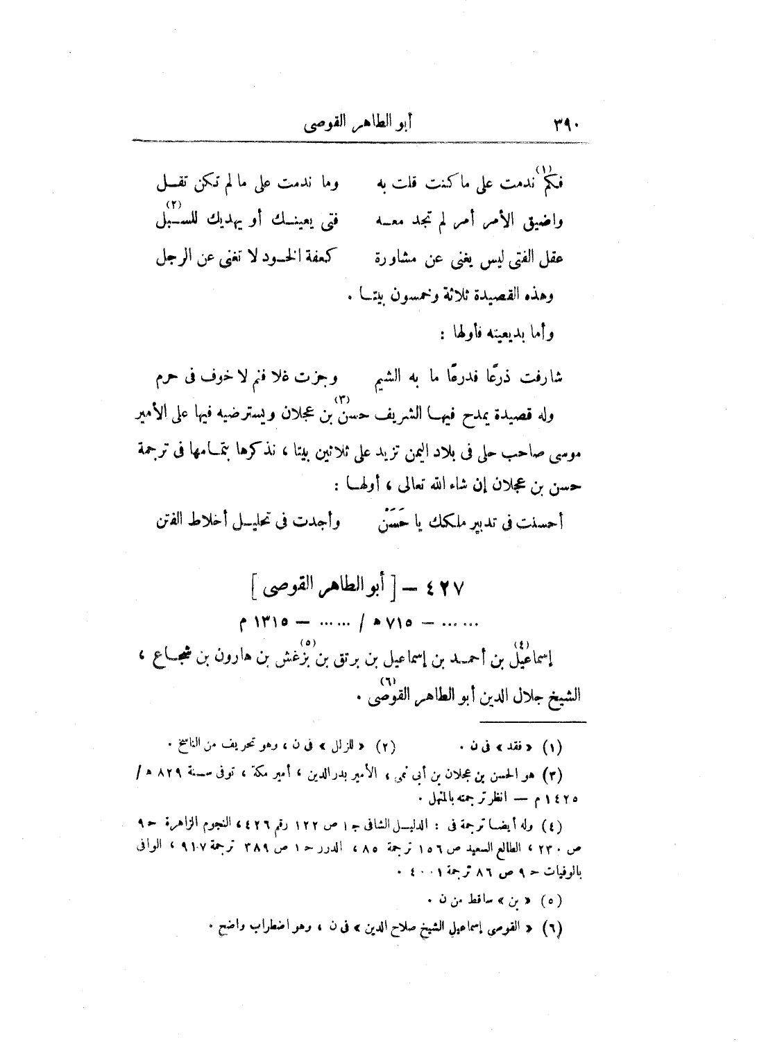 من هذا في ترجمة أحمد من أولاد الأسياد، وكيف أفرج عنهم الملك الأشرف برسباي، توفي إسماعيل هذا في ثالث شهر رمضان سنة خمس وتسعين وسبعمائة، عن خمس وعشرين سنة، وكان نبيلاً لو أهَل، رحمه الله تعالى.