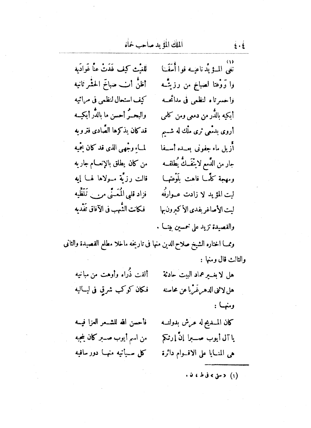 قال وموشحه السلطان رحمه الله نقصت عن موشحة ابن سنا الملك ما التزمه من القافيتين في الخرجة وهي الذال في كذا، والعين في معي، انتهى.