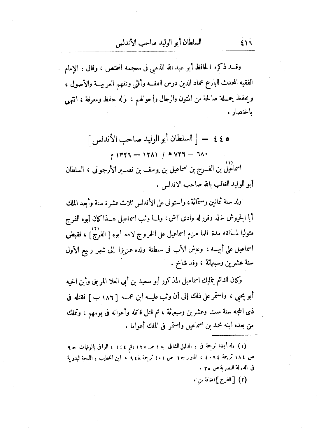 كان له ثروة وعظمة زائدة ومكارم أخلاق، وعنده شجاعة وإقدام، توفي سنة تسع وثمانين وسبعمائة، رحمه الله تعالى.