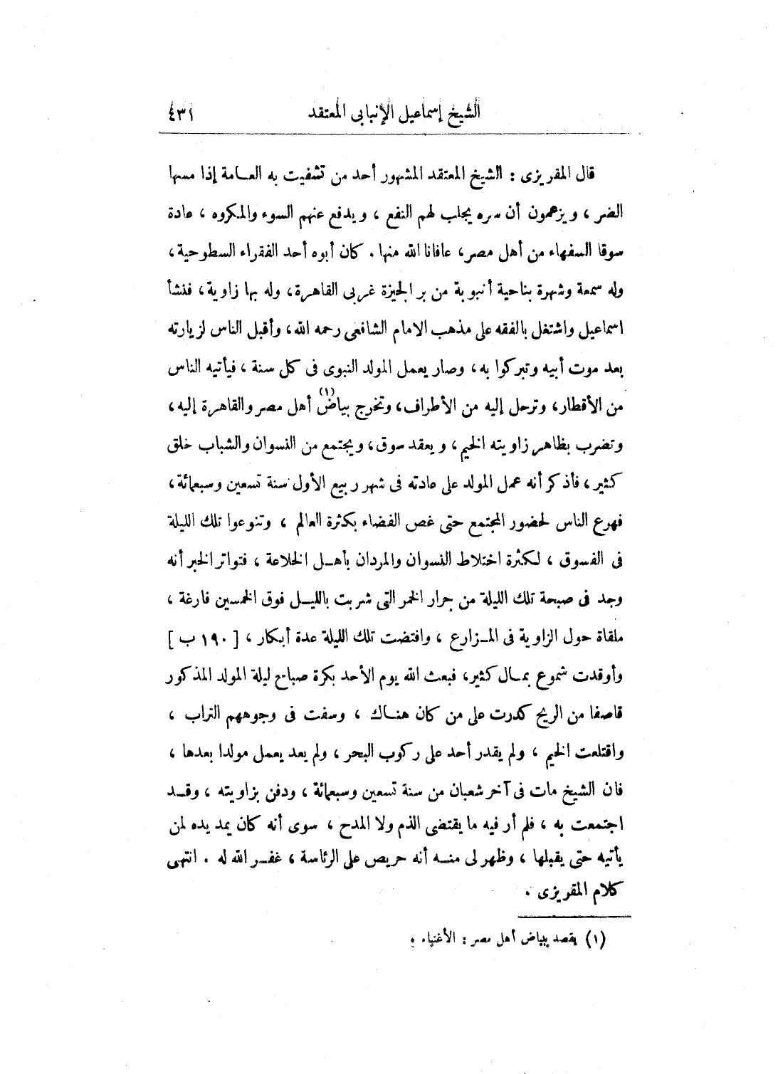 قلت: وكان قيل في الدولة الأشرفية أن أسنباي المذكور أصله من أتراك بغداد الأشراف، ولم أسمع منه ذَلِكَ، بل أشيع هذا عَلَى أفواه الناس. انتهى.