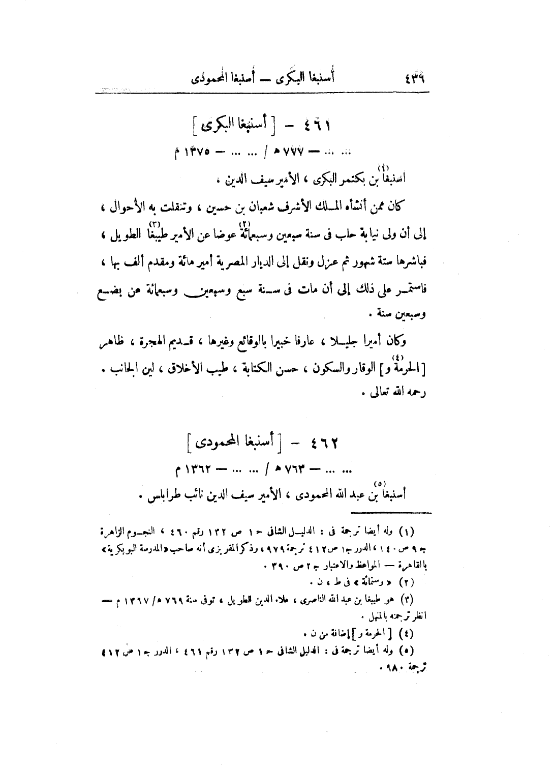 ...... - 769هـ - ... ... - 1368م أسندمر بن عبد الله الناصري، الأمير سيف الدين، أتابك العساكر بالديار المصرية.