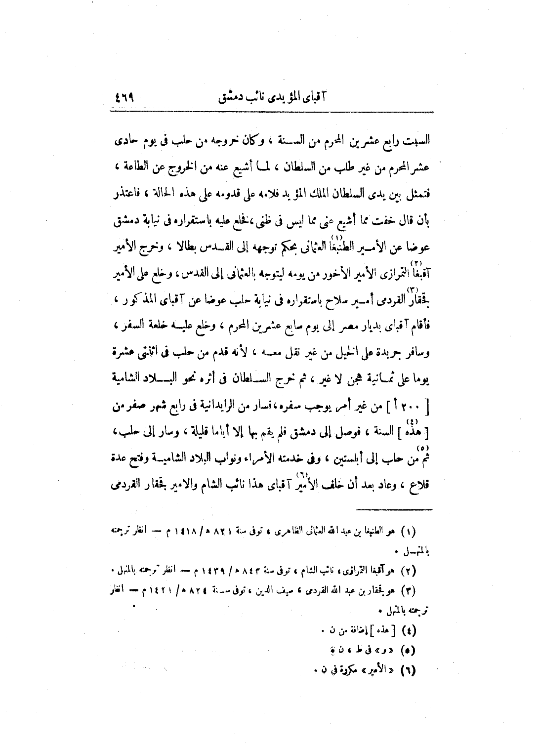 برقوق من حبس الكرك طالباً ملكه ووافقه الأمير كمشبغا الحموي نائب حلب كان آقبغا هذا ممن انتمى كمشغبا من حزب أستاذه الظاهر، ودام معه تلك الحروب والفتن إلى أن انتصر كمشبغا عَلَى البانقوسين بحلب، وولاه الملك الظاهر برقوق نيابة حلب، ولى آقبغا أيضاً حجوبية الحجاب بحلب، ثم بعد مدة ولاه الملك نيابة صفد، ثم نقله بعد مدة إلى نيابة طرابلس بعد الأمير دمرداش المحمدي الظاهري بحكم عزل دمرداش وتوجه إلى حلب أتابكابها، فدام بطرابلس إلى أن ولاه الملك الظاهر برقوق نيابة حلب بعد موت الأمير أرغون شاه الإبراهيمي الظاهري في سنة إحدى وثمانمائة، وأسس بحلب جامعاً تحت القلعة، كان سوقا للغنم فبناه جامعاً، ولم يكمله، ووقف عليه وقفاً فكمله بعد ذَلِكَ الأمير دمرداش المحمدي لما ولي نيابة حلب بعده، واستمر آقبغا المذكور بحلب إلى أن مات الملك الظاهر برقوق في السنة المذكورة، واقتضت السلطنة من بعده لولده الملك الناصر فرج بن برقوق، وكان من أمر الأمير تنم الحسنى نائب الشام ما سنذكره في ترجمته من خروجه عن طاعة الناصر والقبض