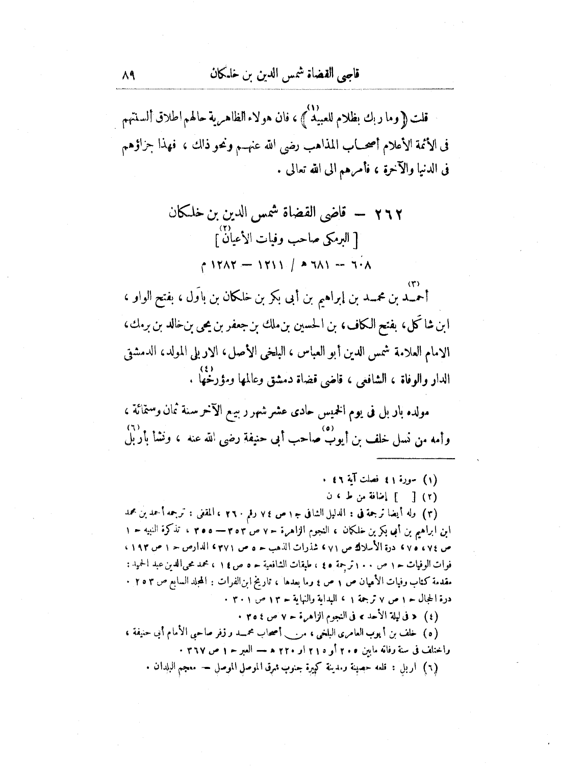 وذكره أيضاً الحافظ أبو محمد البرزالي فِي معجمه وقال فِيهِ: أحد علماء عصره المشهورين، وسيد أدباء دهره المذكورين، جمع بَيْنَ علوم جمة: فقه وعربية وتاريخ ولغة وغير ذَلِكَ، وجمع تاريخاً نفيساً اقتصر فِيهِ عَلَى المشهورين من كل فن، وولي قضاء الشافعية مدة، ودرس وأفتى، وسمع الحديث من ابن المكرم الصوفي بإربل، سمع منه البخاري عن أبي الوقت، وسمع من الشاوي وابن الجميزي، وأجازه المؤيد الطوسي، وأبو روح،