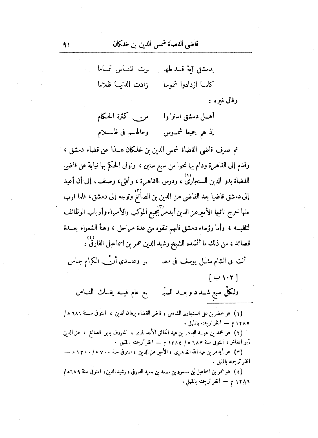 كان أديباً فاضلاً، ماهراً فِي النظم والنثر والكتابة، وغير ذَلِكَ، إِلاَّ أنه كَانَ مولعاً " بالفسق " وشرب الخمر، وثلب أعراض الناس، وَكَانَ يلبس زي الأجناد، وَكَانَ كثير الوقيعة، فِي السلف، فحفظ عَلَيْهِ كلمات شهد عَلَيْهِ بِهَا تقتضي زندقته، وثبت ذَلِكَ عَلَيْهِ عند القاضي صدر الدين أحمد بن عبد الظاهر الدميري " المالكي " فحبس، فكتب وهو فِي الحبس إِلَى القاضي تاج الدين السبكي بقصيدة يسأله حقن دمه منها: