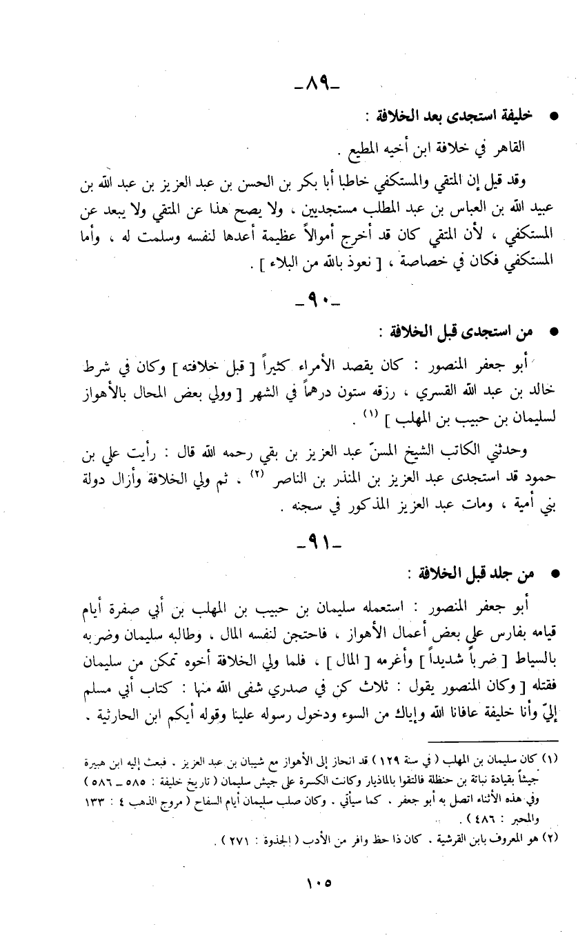 (1) كان سليمان بن المهلب (في سنة 129) قد انحاز إلى الأهواز مع شيبان بن عبد العزيز، فبعث إليه ابن هبيرة جيشاً بقيادة نباتة بن حنظلة فالتقوا بالماذيار وكانت الكسرة على جيش سليمان (تاريخ خليفة: 585 - 586) وفي هذه الأثناء اتصل أبو جعفر، كما سيأتي، وكان صلب سليمان أيام السفاح (مروج الذهب 4: 133 والمحبر: 486) .