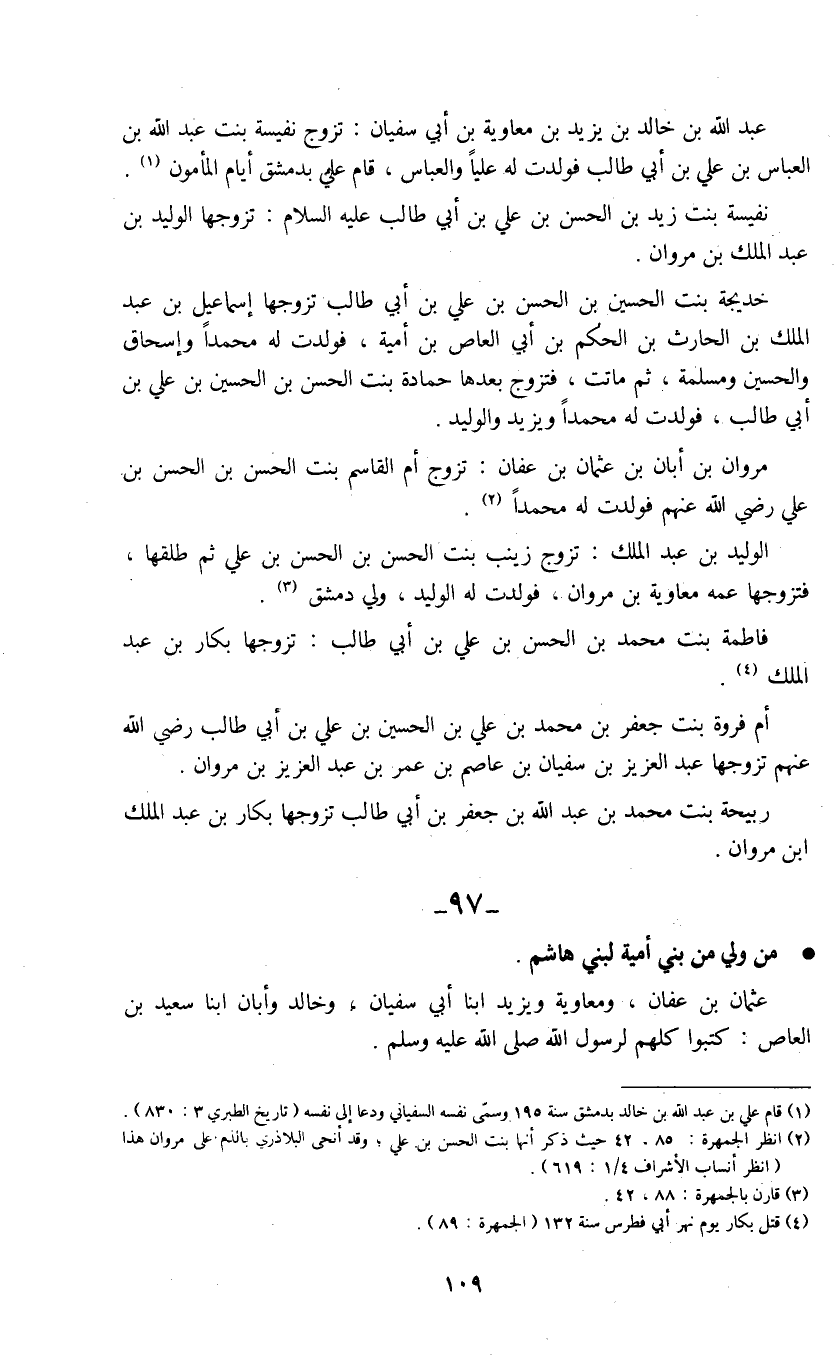 (2) انظر الجمهرة: 85، 45 حيث ذكر أنها بنت الحسن بن علي، وقد أنحى البلاذري بالذم على مروان هذا (انظر أنساب الأشراف 1 4: 619) .