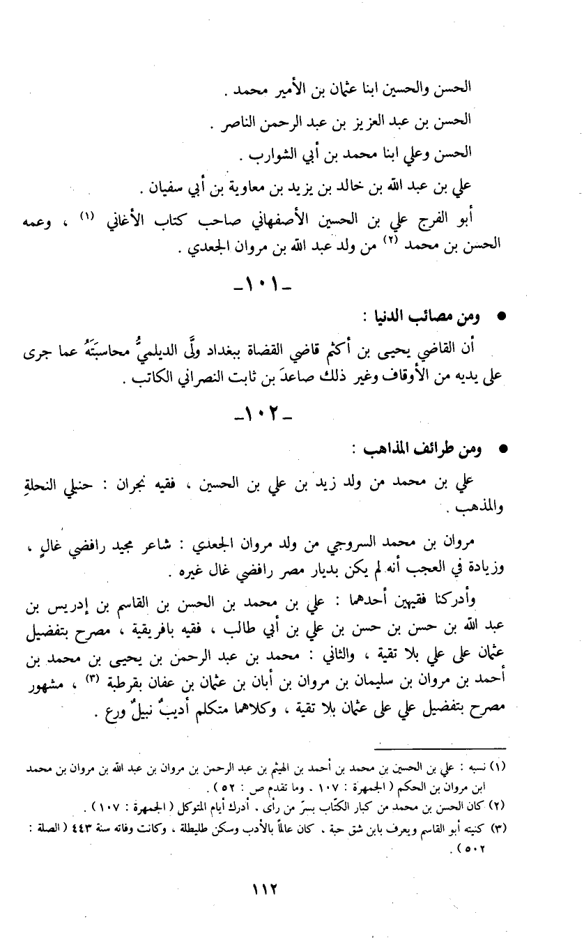 أبو الفرج علي بن الحسين الأصفهاني صاحب كتاب الأغاني (1) ، وعمه الحسن بن محمد (2) من ولد عبد الله بن مروان الجعدي.