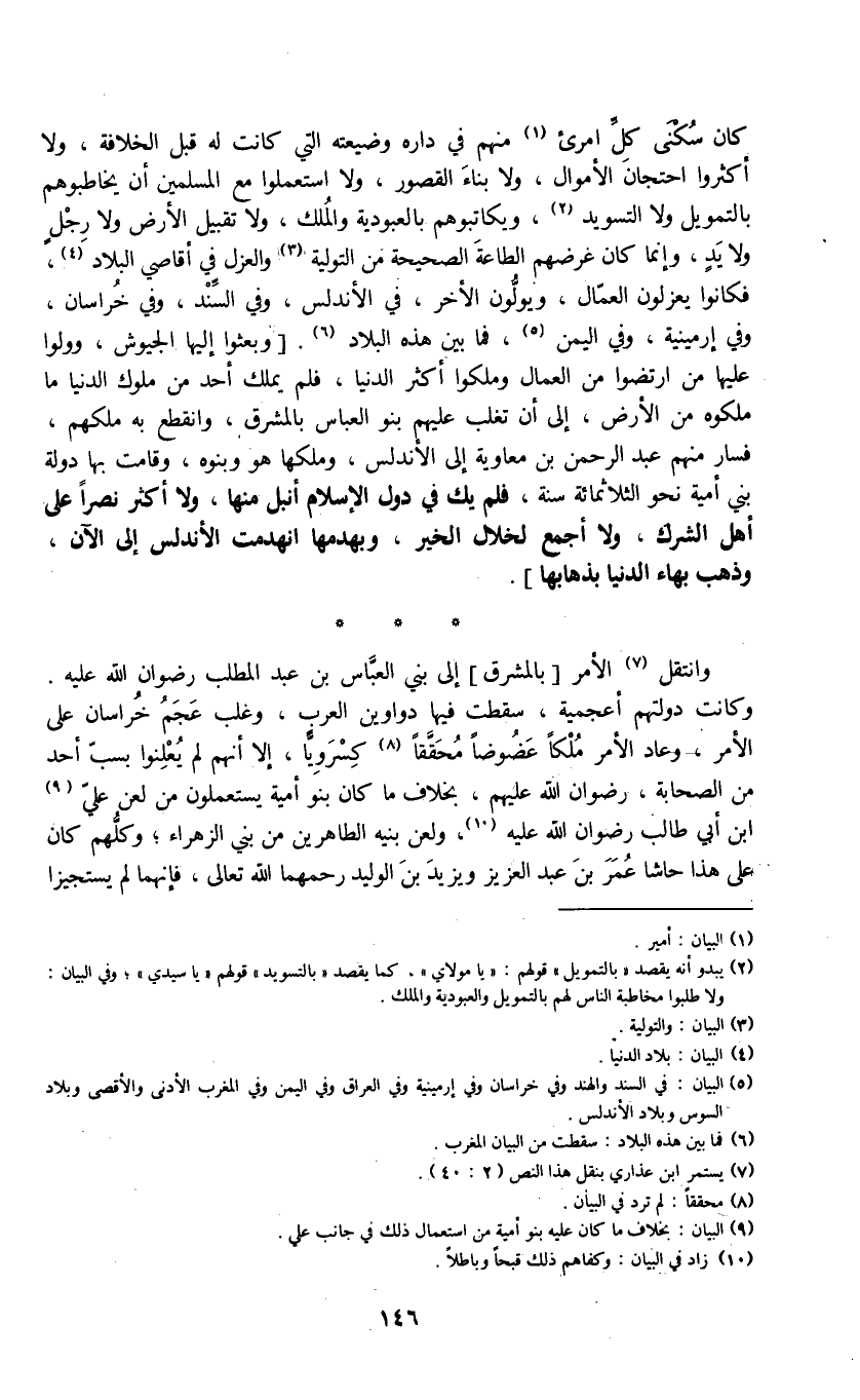 (9) البيان: بخلاف ما كان عليه بنو أمية من استعمال ذلك في جانب علي.