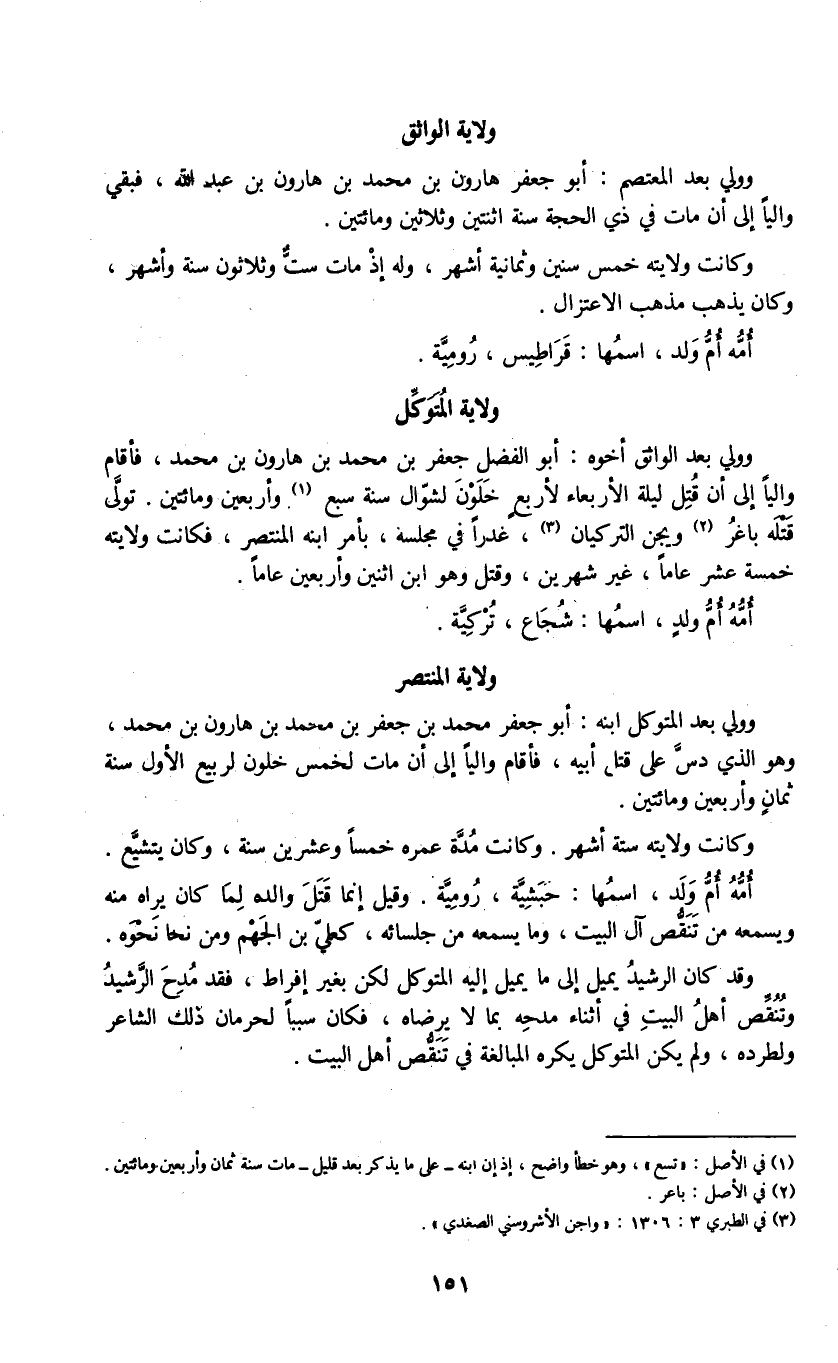 وولي بعد الواثق أخوه: أبو الفضل جعفر بن محمد بن هارون بن محمد، فأقام والياً إلى أن قُتِل ليلة الأربعاء لأربع خَلَوْنَ لشوال سنة سبع (1) وأربعين ومائتين. تولى قتله باغر (2) ويجن التركيان (3) ، غدراً في مجلسه، بأمر ابنه المنتصر، كانت ولايته خمسة عشر عاماً، غير شهرين، وقتل وهو ابن اثنتين وأربعين عاماً.