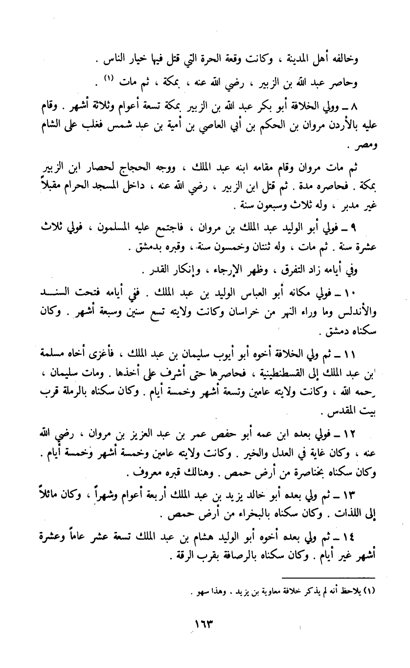 (1) يلاحظ أنه لم يذكر خلافة معاوية بن يزيد، وهذا سهو.