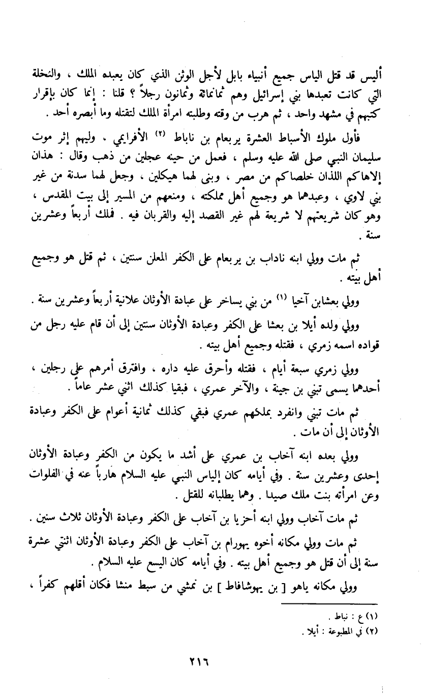 أليس قد قتل الياس جميع أنبياء بابل لأجل الوثن الذي كان يعبده الملك، والنخلة التي كانت تعبدها بني إسرائيل وهم ثمانمائة وثمانون رجلاً قلنا: إنما كان بإقرار كتبهم في مشهد واحد، ثم هرب من وقته وطلبته امرأة الملك لتقتله وما أبصره أحد.