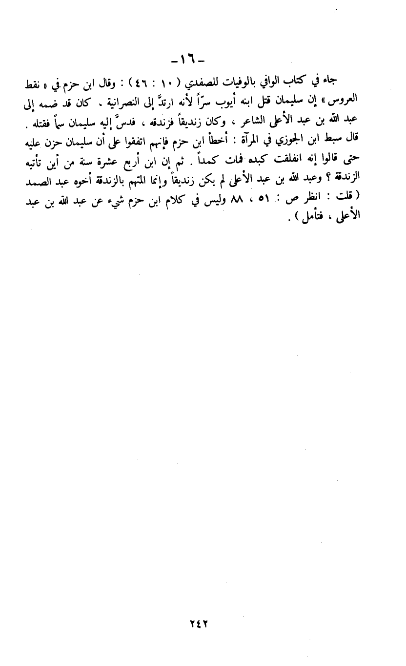 جاء في كتاب الوافي بالوفيات للصفدي (10: 46) وقال ابن حزم في " نقط العروس " إن سليمان قتل ابنه أيوب سراً لأنه ارتد إلى النصرانية، كان قد ضمه إلى عبد الله بن عبد الأعلى الشاعر، وكان زنديقاً فزندقه، فدسَّ إليه سليمان سماً فقتله. قال سبط ابن الجوزي في المرآة: أخطأ ابن حزم فإنهم اتفقوا على أن سليمان حزن عليه حتى قالوا إنه انفلقت كبده فمات كمداً. ثم إن ابن أربع عشرة سنة من أين تأتيه الزندقة وعبد الله بن عبد الأعلى لم يكن زنديقاً وإنما المتهم بالزندقة أخوه عبد الصمد (قلت: انظر ص: 51، 88 وليس في كلام ابن حزم شيء عن عبد الله بن عبد الأعلى، فتأمل) .