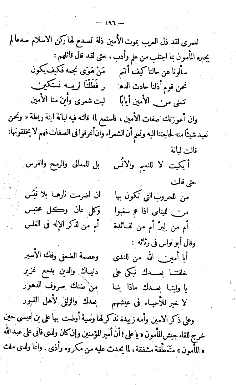 لعمري لقد ذل العرب بموت الأمين ذلة تصدع لها ركن الإسلام صدعا لم يجبره المأمون بما اجتلب من علم وأدب، حتى لقد قال قائلهم: