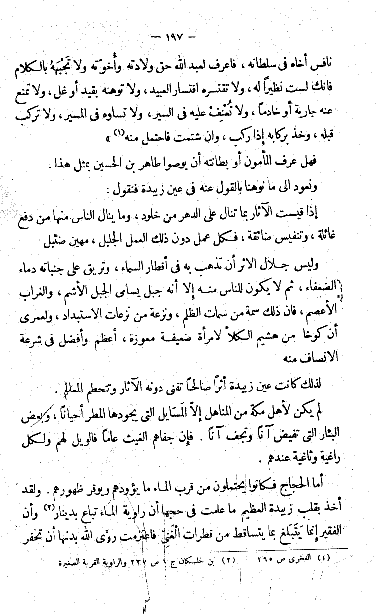 فهل عرف المأمون أو بطانته أن يوصوا طاهر بن الحسين بمثل هذا؟ ونعود إلى ما نوهنا بالقول عنه في عين زبيدة فنقول: