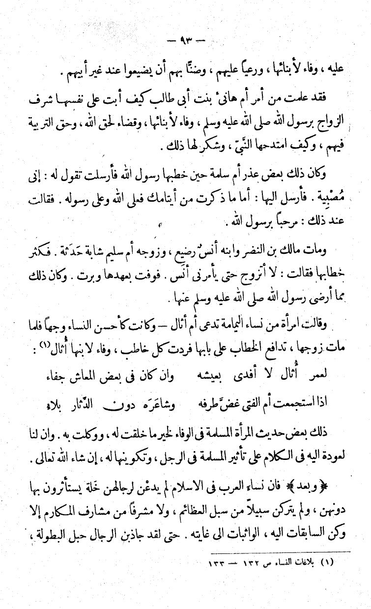 وبعد فإن نساء العرب في الإسلام لم يدعن لرجالهن خلة يستأثرون بها دونهن، ولم يتركن سبيل من سبل العظائم، ولا مشرفاً من مشارف المكارم إلا وكن