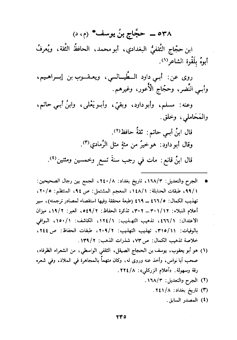 ابن حجّاج الثَّقفي البغدادي، أبو محمد، الحافظُ الثِّقة، ويعرفُ أبوهُ بِلَقْوة الشاعر (¬1).