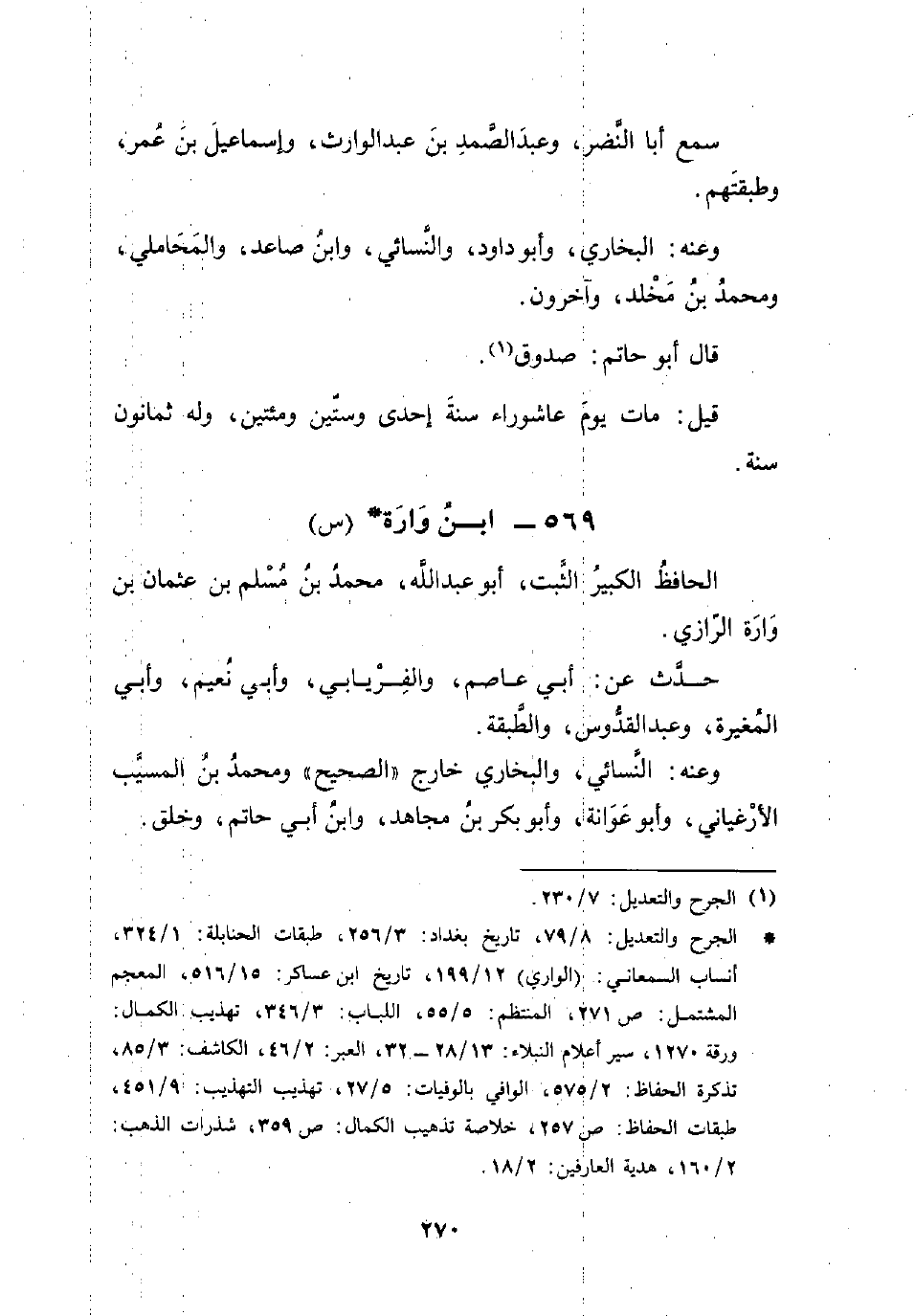 الحافظُ الكبير الثَّبت، أبو عبد الله، محمدُ بنُ مسلم بن عثمان بن وَارَة الرازي.