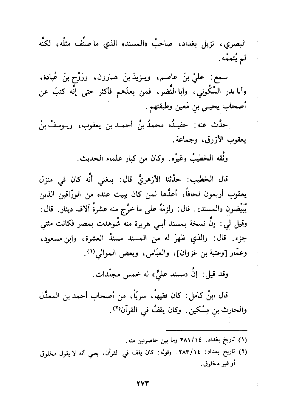 (¬1) تاريخ بغداد: 14/ 281 وما بين حاصرتين منه.