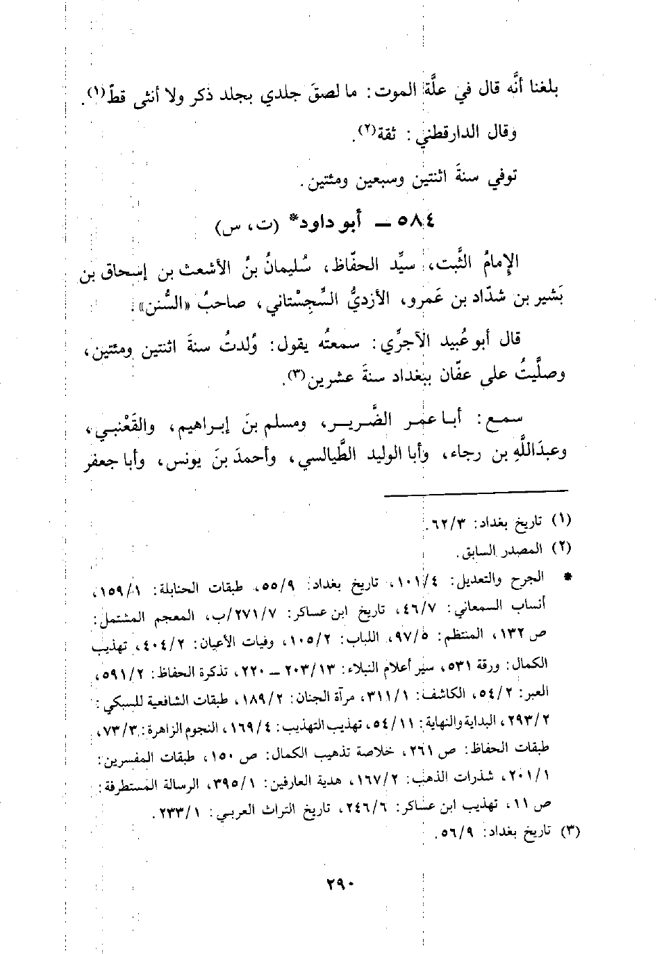 الإمامُ الثبت، سيِّد الحفّاظ، سليمانُ بنُ الأشعث بن إسحاق بن بَشير بن شدّاد بن عَمرو، الأزدي السِّجِسْتاني، صاحبُ "السُّنن".
