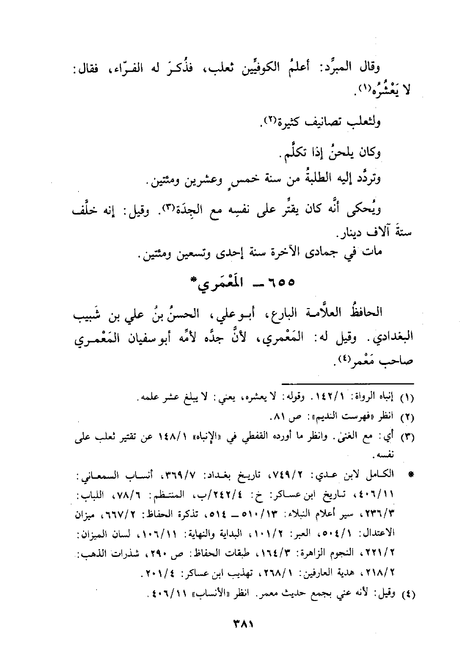 (¬1) إنباه الرواة: 1/ 142. وقوله: لا يعشره، يعني: لا يبلغ عشر علمه.