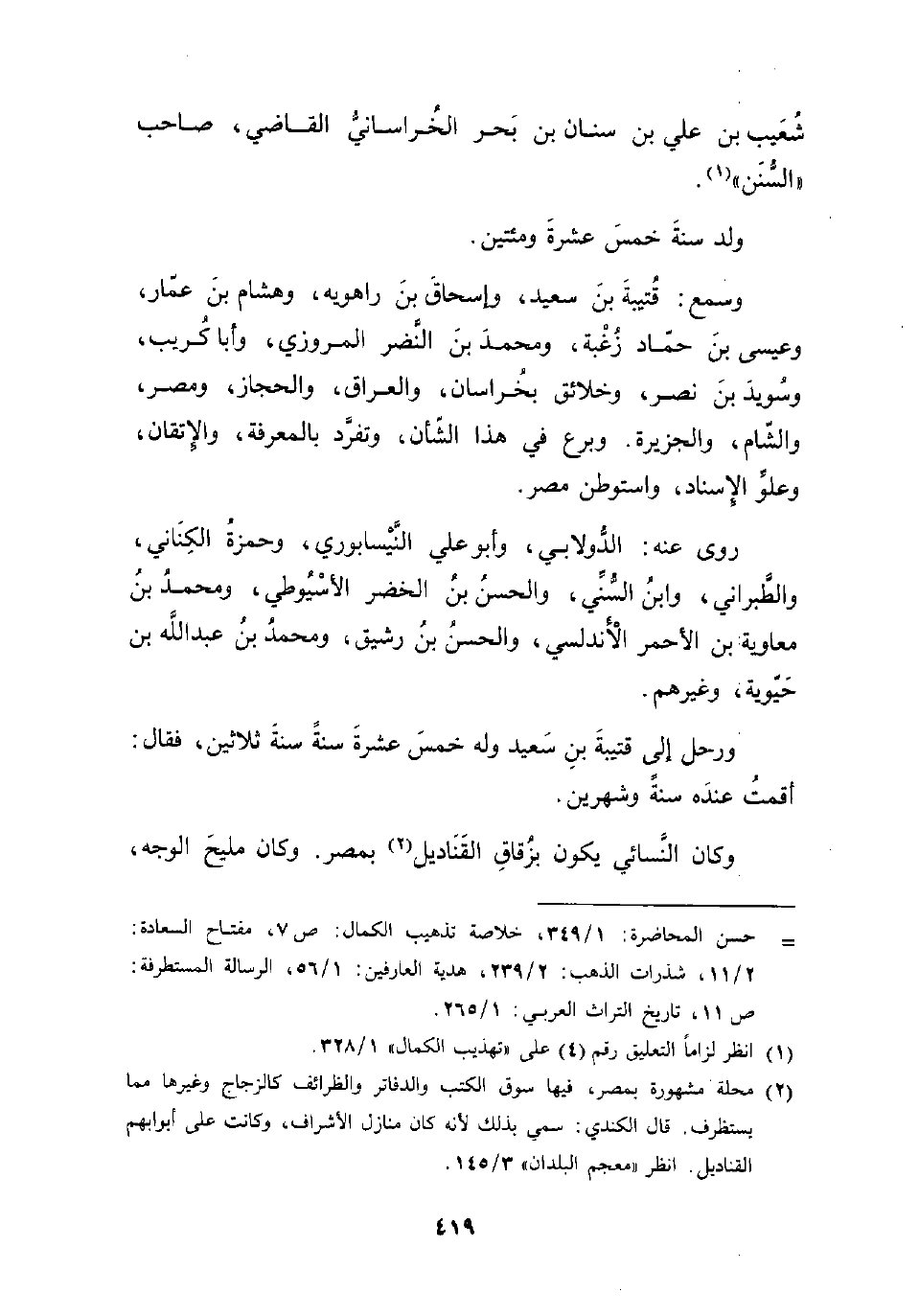 وكان النَّسائي يكون بزُقاقِ القَنَاديل (¬2) بمصر. وكان مليحَ الوجه،