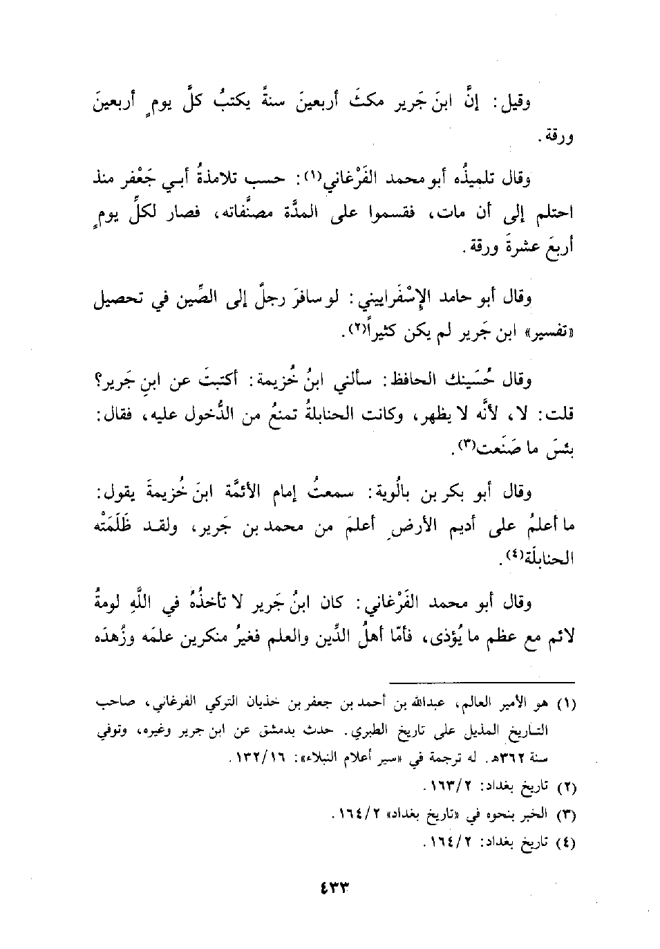 وقيل: إنَّ ابنَ جَرير مكثَ أربعينَ سنةً يكتبُ كلَّ يومٍ أربعينَ ورقة.