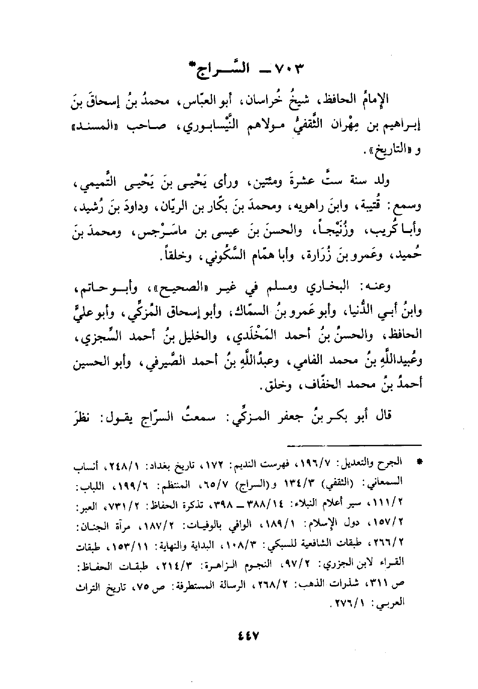 قال أبو بكر بنُ جعفر المزكِّي: سمعتُ السرّاج يقول: نظرَ