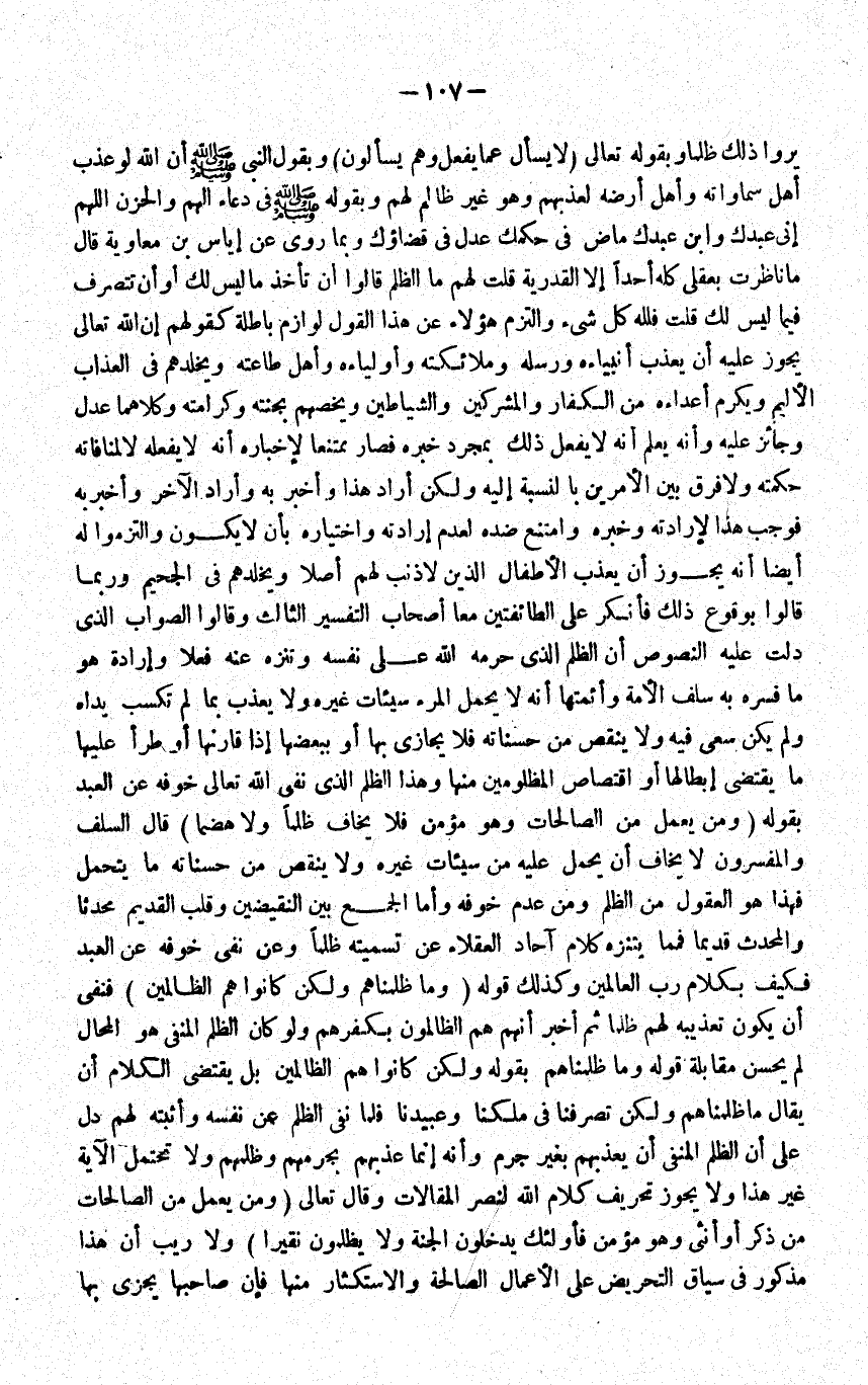 يرَوا ذَلِك ظلما بقوله تَعَالَى {لَا يسْأَل عَمَّا يفعل وهم يسْأَلُون} وَبقول النَّبِي أَن الله لَو عذب أهل سماواته وَأهل أرضه لعذبهم وَهُوَ غير ظَالِم لَهُم وَبِقَوْلِهِ فِي دُعَاء الْهم والحزن اللَّهُمَّ أَنى عَبدك وَابْن عَبدك مَاض فِي حكمك عدل فِي قضاؤك وَبِمَا روى عَن اياس بن مُعَاوِيَة قَالَ مَا ناظرت بعقلي كُله أحدا إِلَّا الْقَدَرِيَّة قلت لَهُم مَا الظُّلم قَالُوا أَن تَأْخُذ مَا لَيْسَ لَك أَو أَن تتصرف فِيمَا لَيْسَ لَك قلت فَللَّه كل شَيْء وَالْتزم هَؤُلَاءِ عَن هَذَا القَوْل لَوَازِم بَاطِلَة كَقَوْلِهِم أَن الله تَعَالَى يجوز عَلَيْهِ أَن يعذب أنبياءه وَرُسُله وَمَلَائِكَته وأولياءه وَأهل طَاعَته ويخلدهم فِي الْعَذَاب اليم وَيكرم أعداءه من الْكفَّار وَالْمُشْرِكين وَالشَّيَاطِين ويخصهم بجنته وكرامته وَكِلَاهُمَا عدل وَجَائِز عَلَيْهِ وَأَنه يعلم أَنه لَا يفعل ذَلِك بِمُجَرَّد خَبره فَصَارَ مُمْتَنعا لإخباره أَنه لَا يَفْعَله لَا لمنافاته حكمته وَلَا فرق بَين المرين بِالنِّسْبَةِ إِلَيْهِ وَلَكِن أَرَادَ هَذَا وَأخْبر بِهِ وَأَرَادَ الآخر وَأخْبر بِهِ فَوَجَبَ هَذَا لارادته وَخَبره وَامْتنع ضِدّه لعدم إِرَادَته واختياره بِأَن لَا يكون والتزموا لَهُ أَيْضا أَنه يجوز أَن يعذب الْأَطْفَال الَّذين لَا ذَنْب لَهُم أصلا ويخلدهم فِي الْجَحِيم وَرُبمَا قَالُوا بِوُقُوع ذَلِك فَأنْكر على الطَّائِفَتَيْنِ مَعًا أَصْحَاب التَّفْسِير الثَّالِث وَقَالُوا الصَّوَاب الَّذِي دلّت عَلَيْهِ النُّصُوص أَن الظُّلم الَّذِي حرمه الله على نَفسه وتنزه عَنهُ فعلا وارادة هُوَ مَا فسره بِهِ سلف الْأمة وأئمتها أَنه لَا يحمل الْمَرْء سيئات غَيره وَلَا يعذب بِمَا لم تكسب يَدَاهُ وَلم يكن سعى فِيهِ وَلَا ينقص من حَسَنَاته فَلَا يجازي بهَا أَو بِبَعْضِهَا إِذا قارنها أَو طَرَأَ عَلَيْهَا مَا يَقْتَضِي إِبْطَالهَا أَو اقتصاص المظلومين مِنْهَا وَهَذَا الظُّلم الَّذِي نفى الله تَعَالَى خَوفه عَن العَبْد بقوله {وَمن يعْمل من الصَّالِحَات وَهُوَ مُؤمن فَلَا يخَاف ظلما وَلَا هضما} قَالَ السّلف والمفسرون لَا يخَاف أَن يحمل عَلَيْهِ من سيئات غَيره وَلَا ينقص من حَسَنَاته مَا يتَحَمَّل فَهَذَا هُوَ الْعُقُول من الظُّلم وَمن عدم خَوفه وَأما الْجمع بَين النقيضين وقلب الْقَدِيم مُحدثا والمحدث قَدِيما فمما يتنزه كَلَام آحَاد الْعُقَلَاء عَن تَسْمِيَته ظلما وَعَن نفي خَوفه عَن العَبْد فَكيف بِكَلَام رب الْعَالمين وَكَذَلِكَ قَوْله {وَمَا ظلمناهم وَلَكِن كَانُوا هم الظَّالِمين} فنفى أَن يكون تعذيبه لَهُم ظلما ثمَّ أخبر أَنهم هم الظَّالِمُونَ بكفرهم وَلَو كَانَ الظُّلم الْمَنْفِيّ هُوَ الْمحَال لم يحسن مُقَابلَة قَوْله وَمَا ظلمناهم بقوله وَلَكِن كَانُوا هم الظَّالِمين بل يَقْتَضِي الْكَلَام أَن يُقَال مَا ظلمناهم وَلَكِن تصرفنا فِي ملكنا وعبيدنا فَلَمَّا نفى الظُّلم عَن نَفسه وأثبته لَهُم دلّ على أَن الظُّلم الْمَنْفِيّ أَن يعذبهم بِغَيْر جرم وَأَنه إِنَّمَا عذبهم بجرمهم وظلمهم وَلَا تحْتَمل الْآيَة غير هَذَا وَلَا يجوز تَحْرِيف كَلَام الله لنصر المقالات وَقَالَ تَعَالَى {وَمن يعْمل من الصَّالِحَات من ذكر أَو أُنْثَى وَهُوَ مُؤمن فَأُولَئِك يدْخلُونَ الْجنَّة وَلَا يظْلمُونَ نقيرا} وَلَا ريب أَن هَذَا مَذْكُور فِي سِيَاق التحريض على الْأَعْمَال الصَّالِحَة والاستكثار مِنْهَا فان صَاحبهَا يَجْزِي بهَا