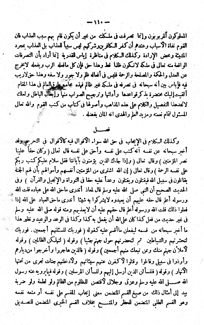المملوكون المربوبون وانما تصرفت فِي ملكك من غير أَن يكون قَامَ بهم سَبَب الْعَذَاب فان الْقَوْم نفاة الْأَسْبَاب وَعِنْدهم أَن كفر الْكَافرين وشركهم لَيْسَ سَببا للعذاب بل الْعَذَاب بِمُجَرَّد الْمَشِيئَة ومحض الْإِرَادَة وَكَذَلِكَ الْكَلَام فِي مناظرة اياس للقدرية إِنَّمَا أَرَادَ بِأَن التَّصَرُّفَات الْوَاقِعَة مِنْهُ تَعَالَى فِي ملكه لَا تكون ظلما قطّ وَهَذَا حق فان كل مَا فعله الرب ويفعله لَا يخرج عَن الْعدْل وَالْحكمَة والمصلحة وَالرَّحْمَة فَلَيْسَ فِي أَفعاله ظلم وَلَا جور وَلَا سفه وَهَذَا حق لَا ريب فِيهِ فاياس بَين أَنه سُبْحَانَهُ فِي تصرفه فِي ملكه غير ظَالِم فَهَذِهِ مجامع طرق الْعَالم فِي هَذَا الْمقَام ألقيت إِلَيْك محتضرة بِذكر قواعدها وأداتها وترجيح الصَّوَاب مِنْهَا وابطال الْبَاطِل ولعلك لَا تَجِد هَذَا التَّفْصِيل وَالْكَلَام على هَذِه الْمذَاهب وأصولها فِي كتاب من كتب الْقَوْم وَالله تَعَالَى الْمَسْئُول لتَمام نعْمَته ومزيد الْعلم وَالْهدى انه المان بفضله