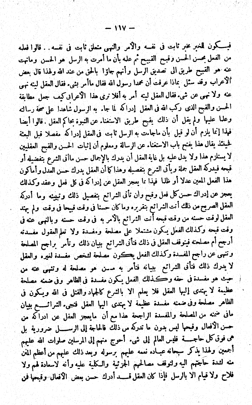 فَيكون للْخَبَر مخبر ثَابت فِي نَفسه وَالْأَمر وَالنَّهْي مُتَعَلق ثَابت فِي نَفسه قَالُوا فَعلمه من الْعقل محسن الْحسن وقبح الْقَبِيح ثمَّ علمه بِأَن مَا أمرت بِهِ الرُّسُل هُوَ الْحسن وَمَا نهت عَنهُ هُوَ الْقَبِيح طَرِيق إِلَيّ تَصْدِيق الرُّسُل وَأَنَّهُمْ جاؤا بِالْحَقِّ من عِنْد الله وَلِهَذَا قَالَ بعض الْأَعْرَاب وَقد سُئِلَ بِمَاذَا عرفت أَن مُحَمَّدًا رَسُول الله فَقَالَ مَا أَمر بِشَيْء فَقَالَ الْعقل ليته نهى عَنهُ وَلَا نهى عَن شَيْء فَقَالَ الْعقل ليته أَمر بِهِ أَفلا ترى هَذَا الْأَعرَابِي كَيفَ جعل مُطَابقَة الْحسن والقبح الَّذِي ركب الله فِي الْعقل ادراكه لما جَاءَ بِهِ الرَّسُول شَاهدا على صِحَة رسَالَته وعلما عَلَيْهَا وَلم يقل أَن ذَلِك يقبح طَرِيق الِاسْتِغْنَاء عَن النُّبُوَّة بحاكم الْعقل قَالُوا أَيْضا فَهَذَا إِنَّمَا يلْزم أَن لَو قيل بِأَن مَا جَاءَت بِهِ الرُّسُل ثَابت فِي الْعقل إِدْرَاكه مفصلا قبل الْبعْثَة فَحِينَئِذٍ يُقَال هَذَا يفتح بَاب الِاسْتِغْنَاء عَن الرسَالَة وَمَعْلُوم أَن إِثْبَات الْحسن والقبح العقليين لَا يسْتَلْزم هَذَا وَلَا يدل عَلَيْهِ بل غَايَة الْعقل أَن يدْرك بالإجمال حسن مَا أَتَى الشَّرْع بتفضيله أَو قبحه فيدركه الْعقل جملَة وَيَأْتِي الشَّرْع بتفصيله وَهَذَا كَمَا أَن الْعقل يدْرك حسن الْعدْل وَأما كَون هَذَا الْفِعْل الْمعِين عدلا أَو ظلما فَهَذَا مِمَّا يعجز الْعقل عَن إِدْرَاكه فِي كل فعل وَعقد وَكَذَلِكَ يعجز عَن إِدْرَاك حسن كل فعل وقبح وان تَأتي الشَّرَائِع بتفصيل ذَلِك وتبينه وَمَا أدْركهُ الْعقل الصَّرِيح من ذَلِك أَتَت الشَّرَائِع بتقريره وَمَا كَانَ حسنا فِي وَقت قبيحا فِي وَقت وَلم يهتد الْعقل لوقت حسنه من وَقت قبحه أَتَت الشَّرَائِع بِالْأَمر بِهِ فِي وَقت حسنه وبالنهي عَنهُ فِي وَقت قبحه وَكَذَلِكَ الْفِعْل يكون مُشْتَمِلًا على مصلحَة ومفسدة وَلَا تعلم الْعُقُول مفسدته أرجح أم مصْلحَته فَيتَوَقَّف الْعقل فِي ذَلِك فتأتي الشَّرَائِع بِبَيَان ذَلِك وتأمر براجح الْمصلحَة وتنهى عَن رَاجِح الْمفْسدَة وَكَذَلِكَ الْفِعْل يكون مصلحَة لشخص مفْسدَة لغيره وَالْعقل لَا يدْرك ذَلِك فتأتي الشَّرَائِع ببيانه فتأمر بِهِ من هُوَ مصلحَة لَهُ وتنهى عَنهُ من حَيْثُ هُوَ مفْسدَة فِي حَقه وَكَذَلِكَ الْفِعْل يكون مفْسدَة فِي الظَّاهِر وَفِي ضمنه مصلحَة عَظِيمَة لَا يَهْتَدِي إِلَيْهَا الْعقل فَلَا يعلم إِلَّا بِالشَّرْعِ كالجهاد وَالْقَتْل فِي الله وَيكون فِي الظَّاهِر مصلحَة وَفِي ضمنه مفْسدَة عَظِيمَة لَا يَهْتَدِي إِلَيْهَا الْعقل فتجيء الشَّرَائِع بِبَيَان مَا فِي ضمنه من الْمصلحَة والمفسدة الراجحة هَذَا مَعَ أَن مَا يعجز الْعقل عَن إِدْرَاكه من حسن الْأَفْعَال وقبحها لَيْسَ بِدُونِ مَا تُدْرِكهُ من ذَلِك فالحاجة إِلَيّ الرُّسُل ضَرُورِيَّة بل هِيَ فَوق كل حَاجَة فَلَيْسَ الْعَالم إِلَيّ شَيْء أحْوج مِنْهُم إِلَيّ الْمُرْسلين صلوَات الله عَلَيْهِم أَجْمَعِينَ وَلِهَذَا يذكر سُبْحَانَهُ عباده نعمه عَلَيْهِم بِرَسُولِهِ ويعد ذَلِك عَلَيْهِم من أعظم المنن مِنْهُ لشدَّة حَاجتهم إِلَيْهِ ولتوقف مصالحهم الْجُزْئِيَّة والكلية عَلَيْهِ وَأَنه لاسعادة لَهُم وَلَا فلاح وَلَا قيام إِلَّا بالرسل فَإِذا كَانَ الْعقل قد أدْرك حسن بعض الْأَفْعَال وقبحها فَمن