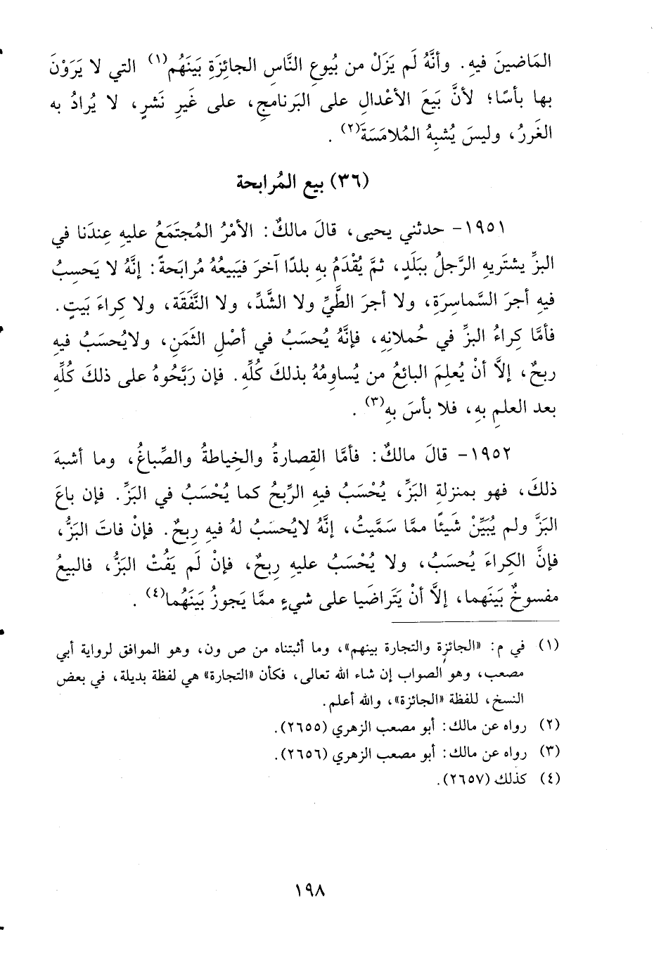 1952- قَالَ مَالِكٌ: فَأَمَّا الْقِصَارَةُ، وَالْخِيَاطَةُ، وَالصِّبَاغُ، وَمَا أَشْبَهَ ذَلِكَ، فَهُوَ بِمَنْزِلَةِ الْبَزِّ، يُحْسَبُ فِيهِ الرِّبْحُ كَمَا يُحْسَبُ فِي الْبَزِّ، فَإِنْ بَاعَ الْبَزَّ، وَلَمْ يُبَيِّنْ شَيْئًا مِمَّا سَمَّيْتُ، إِنَّهُ لاَ يُحْسَبُ لَهُ فِيهِ رِبْحٌ، فَإِنْ فَاتَ الْبَزُّ، فَإِنَّ الْكِرَاءَ يُحْسَبُ، وَلاَ يُحْسَبُ عَلَيْهِ رِبْحٌ، فَإِنْ لَمْ يَفُتِ الْبَزُّ، فَالْبَيْعُ مَفْسُوخٌ بَيْنَهُمَا، إِلاَّ أَنْ يَتَرَاضَيَا عَلَى شَيْءٍ مِمَّا يَجُوزُ بَيْنَهُمَا.
