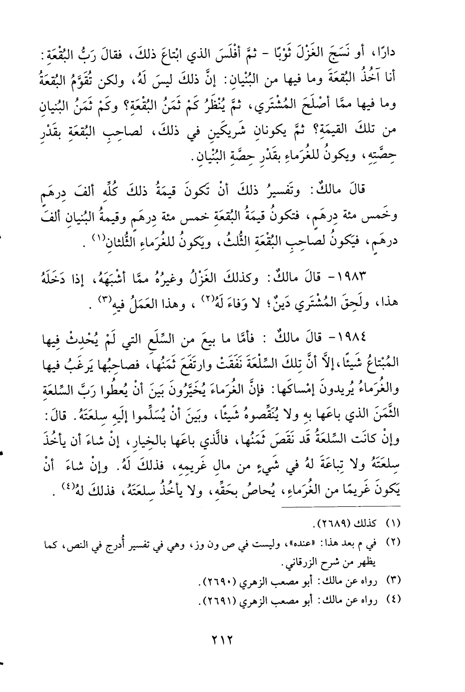 1983- قَالَ مَالِكٌ: وَكَذَلِكَ الْغَزْلُ وَغَيْرُهُ مِمَّا أَشْبَهَهُ، إِذَا دَخَلَهُ هَذَا، وَلَحِقَ الْمُشْتَرِي دَيْنٌ لاَ وَفَاءَ لَهُ، وَهَذَا الْعَمَلُ فِيهِ.