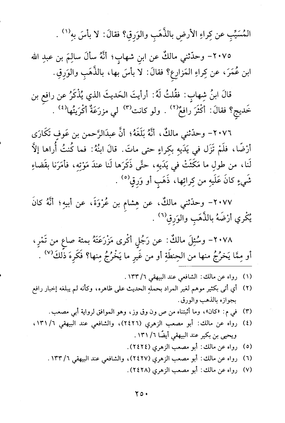 2075- وَحَدَّثَنِي مَالِكٌ، عَنِ ابْنِ شِهَابٍ، أَنَّهُ سَأَلَ سَالِمَ بْنَ عَبْدِ اللهِ بْنِ عُمَرَ عَنْ كِرَاءِ الْمَزَارِعِ، فَقَالَ: لاَ بَأْسَ بِهَا بِالذَّهَبِ وَالْوَرِقِ.