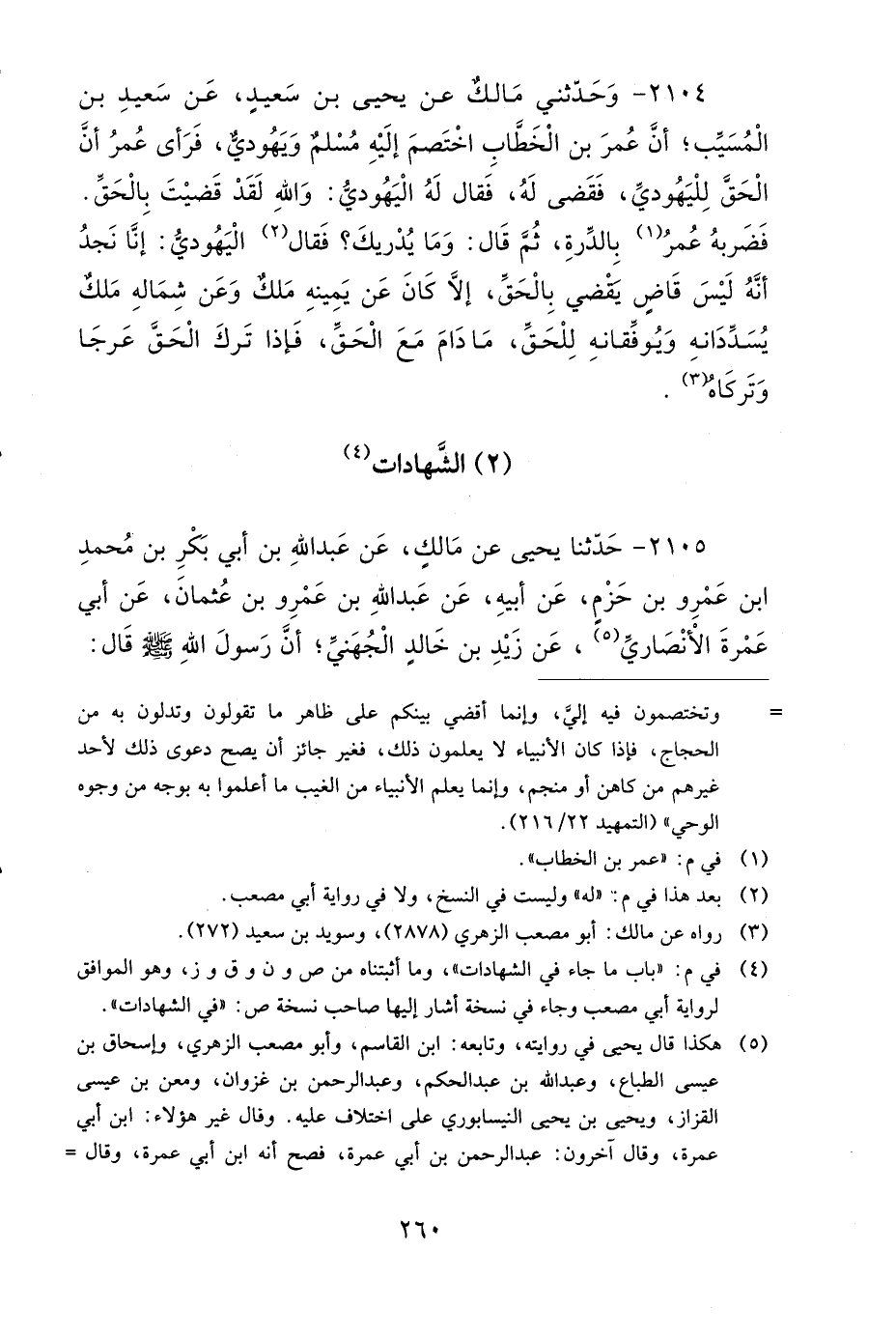 2104- وحَدَّثَنِي مَالِكٌ، عَنْ يَحْيَى بْنِ سَعِيدٍ، عَنْ سَعِيدِ بْنِ الْمُسَيَّبِ، أَنَّ عُمَرَ بْنَ الْخَطَّابِ اخْتَصَمَ إِلَيْهِ مُسْلِمٌ وَيَهُودِيٌّ، فَرَأَى عُمَرُ أَنَّ الْحَقَّ لِلْيَهُودِيِّ، فَقَضَى لَهُ، فَقَالَ لَهُ الْيَهُودِيُّ: وَاللَّهِ لَقَدْ قَضَيْتَ بِالْحَقِّ، فَضَرَبَهُ عُمَرُ بِالدِّرَّةِ، ثُمَّ قَالَ: وَمَا يُدْرِيكَ؟ فَقَالَ الْيَهُودِيُّ: إِنَّا نَجِدُ، أَنَّهُ لَيْسَ قَاضٍ يَقْضِي بِالْحَقِّ، إِلاَّ كَانَ عَنْ يَمِينِهِ مَلَكٌ، وَعَنْ شِمَالِهِ مَلَكٌ، يُسَدِّدَانِهِ، وَيُوَفِّقَانِهِ لِلْحَقِّ، مَا دَامَ مَعَ الْحَقِّ، فَإِذَا تَرَكَ الْحَقَّ عَرَجَا وَتَرَكَاهُ.