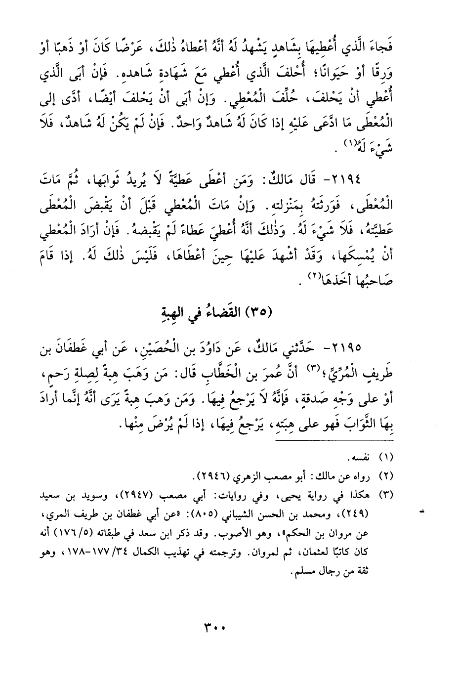2195- حَدَّثَنِي مَالِكٌ، عَنْ دَاوُدَ بْنِ الْحُصَيْنِ، عَنْ أَبِي غَطَفَانَ بْنِ طَرِيفٍ الْمُرِّيِّ، أَنَّ عُمَرَ بْنَ الْخَطَّابِ قَالَ: مَنْ وَهَبَ هِبَةً لِصِلَةِ رَحِمٍ، أَوْ عَلَى وَجْهِ صَدَقَةٍ، فَإِنَّهُ لاَ يَرْجِعُ فِيهَا، وَمَنْ وَهَبَ هِبَةً يَرَى أَنَّهُ إِنَّمَا أَرَادَ بِهَا الثَّوَابَ، فَهُوَ عَلَى هِبَتِهِ، يَرْجِعُ فِيهَا إِذَا لَمْ يُرْضَ مِنْهَا.