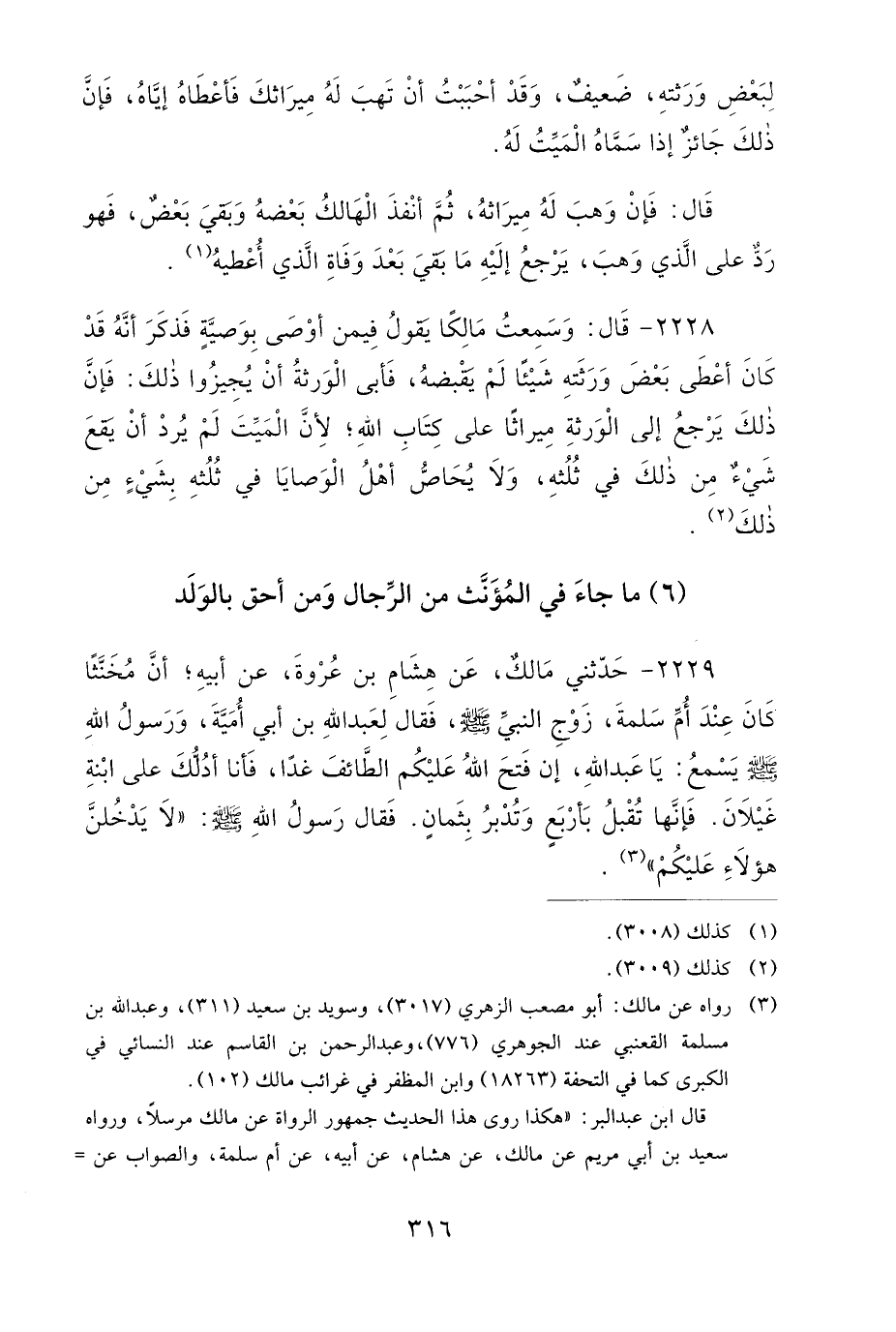 2229- حَدَّثَنِي مَالِكٌ، عَنْ هِشَامِ بْنِ عُرْوَةَ، عَنْ أَبِيهِ، أَنَّ مُخَنَّثًا كَانَ عِنْدَ أُمِّ سَلَمَةَ، زَوْجِ النَّبِيِّ صَلى الله عَلَيهِ وَسَلمَ، فَقَالَ لِعَبْدِ اللهِ بْنِ أَبِي أُمَيَّةَ، وَرَسُولُ اللهِ صَلى الله عَلَيهِ وَسَلمَ يَسْمَعُ: يَا عَبْدَ اللهِ، إِنْ فَتَحَ اللهُ عَلَيْكُمُ الطَّائِفَ غَدًا، فَأَنَا أَدُلُّكَ عَلَى ابْنَةِ غَيْلاَنَ، فَإِنَّهَا تُقْبِلُ بِأَرْبَعٍ، وَتُدْبِرُ بِثَمَانٍ، فَقَالَ رَسُولُ اللهِ صَلى الله عَلَيهِ وَسَلمَ: لاَ يَدْخُلَنَّ هَؤُلاَءِ عَلَيْكُمْ.