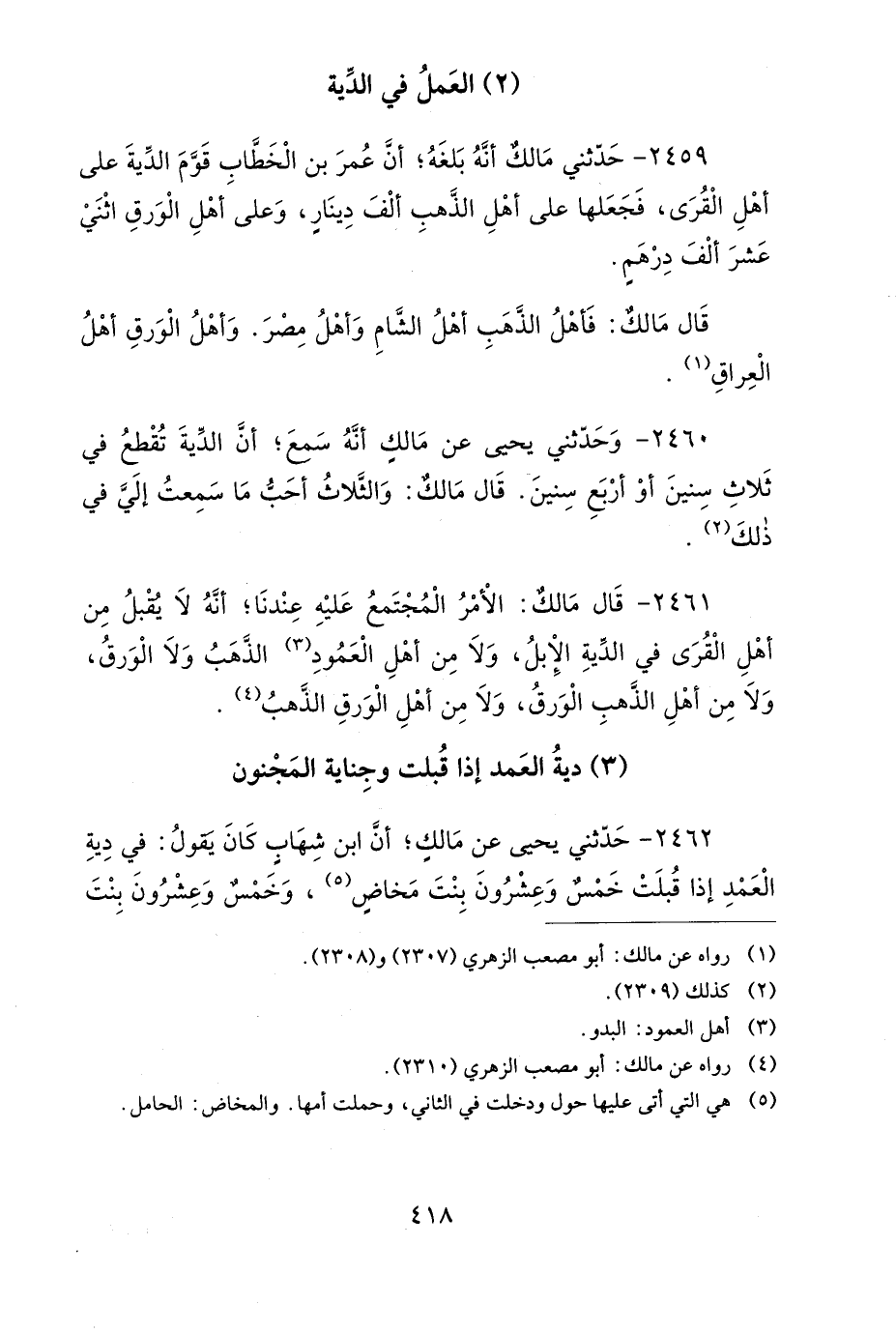 2461- قَالَ مَالِكٌ: الأَمْرُ الْمُجْتَمَعُ عَلَيْهِ عِنْدَنَا، أَنَّهُ لاَ يُقْبَلُ مِنْ أَهْلِ الْقُرَى فِي الدِّيَةِ الإِبِلُ، وَلاَ مِنْ أَهْلِ الْعَمُودِ الذَّهَبُ، وَلاَ الْوَرِقُ، وَلاَ مِنْ أَهْلِ الذَّهَبِ الْوَرِقُ، وَلاَ مِنْ أَهْلِ الْوَرِقِ الذَّهَبُ.