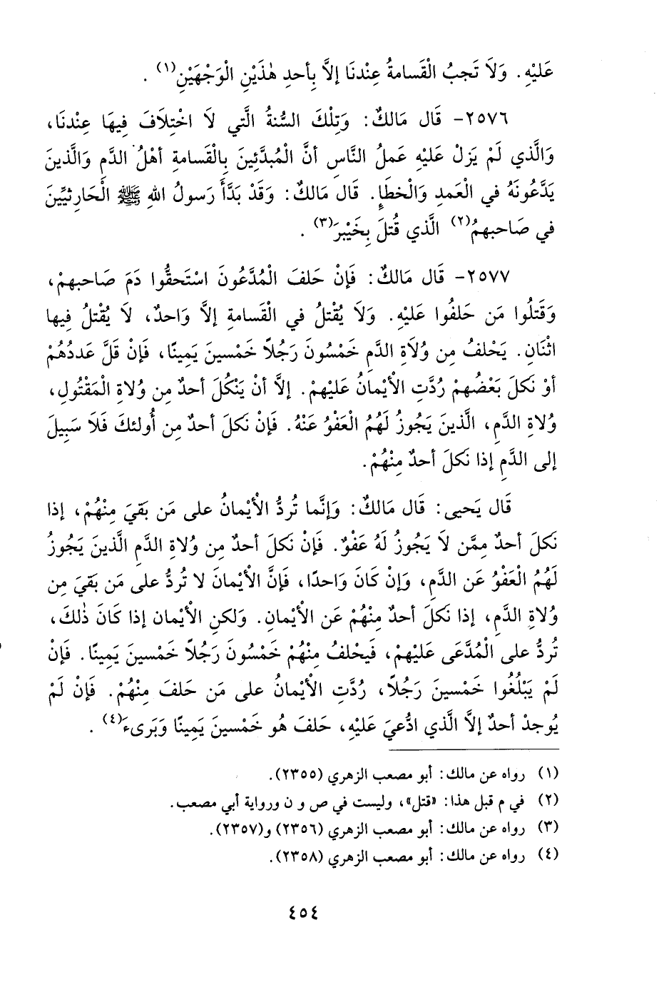 2576- قَالَ مَالِكٌ: وَتِلْكَ السُّنَّةُ الَّتِي لاَ اخْتِلاَفَ فِيهَا عِنْدَنَا، وَالَّذِي لَمْ يَزَلْ عَلَيْهِ عَمَلُ النَّاسِ: أَنَّ الْمُبَدَّئِينَ بِالْقَسَامَةِ أَهْلُ الدَّمِ، وَالَّذِينَ يَدَّعُونَهُ فِي الْعَمْدِ وَالْخَطَإِ، قالَ مَالِكٌ: وَقَدْ بَدَّأَ رَسُولُ اللهِ صَلى الله عَلَيهِ وَسَلمَ الْحَارِثِيِّينَ فِي صَاحِبِهِمِ الَّذِي قُتِلَ بِخَيْبَرَ.