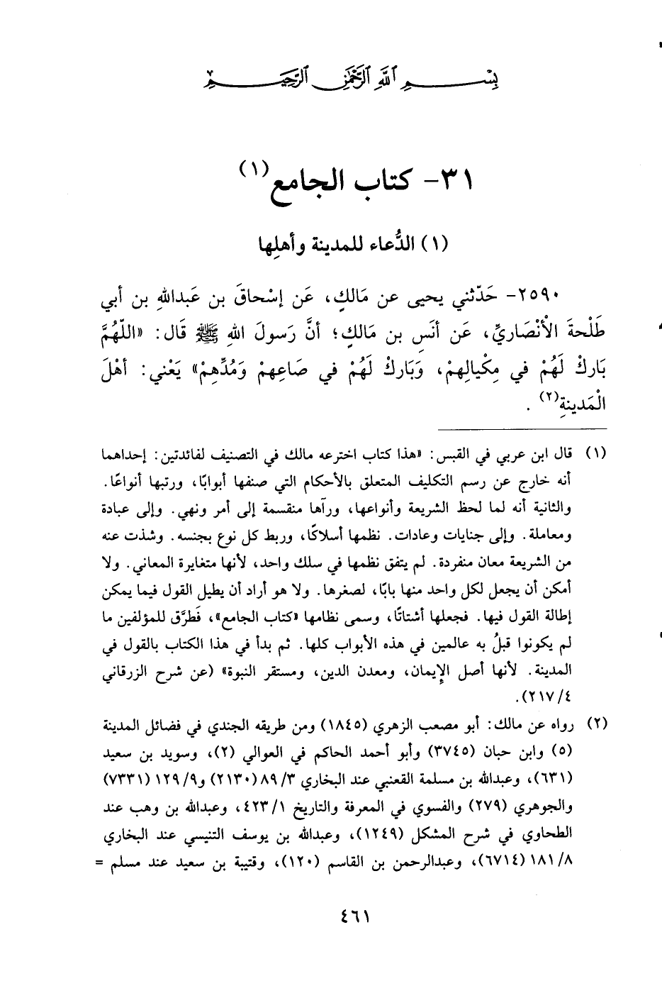 2590 - حَدَّثَنِي يَحْيَى، عَنْ مَالِكٍ، عَنْ إِسْحَاقَ بْنِ عَبْدِ اللهِ بْنِ أَبِي طَلْحَةَ الأَنْصَارِيِّ، عَنْ أَنَسِ بْنِ مَالِكٍ، أَنَّ رَسُولَ اللهِ صَلى الله عَلَيهِ وَسَلمَ قَالَ: اللهُمَّ بَارِكْ لَهُمْ فِي مِكْيَالِهِمْ، وَبَارِكْ لَهُمْ فِي صَاعِهِمْ وَمُدِّهِمْ، يَعْنِي أَهْلَ الْمَدِينَةِ.