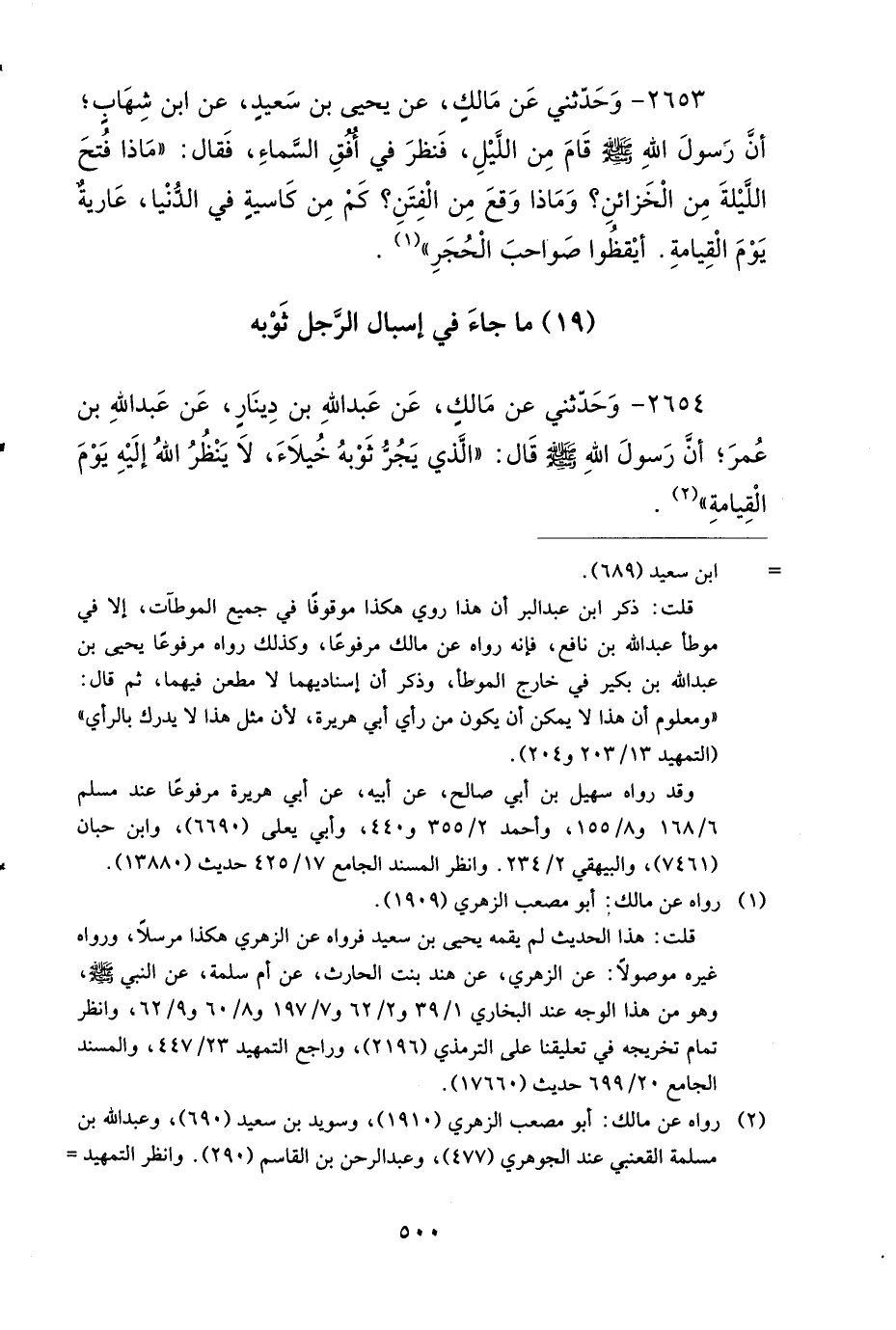 (1) وهو في رواية أَبِي مُصْعَب الزُّهْرِي (1910)، وسُوَيْد بن سَعِيد (690)، وابن القاسم (290)، وورد في "مسند الموطأ" 477.