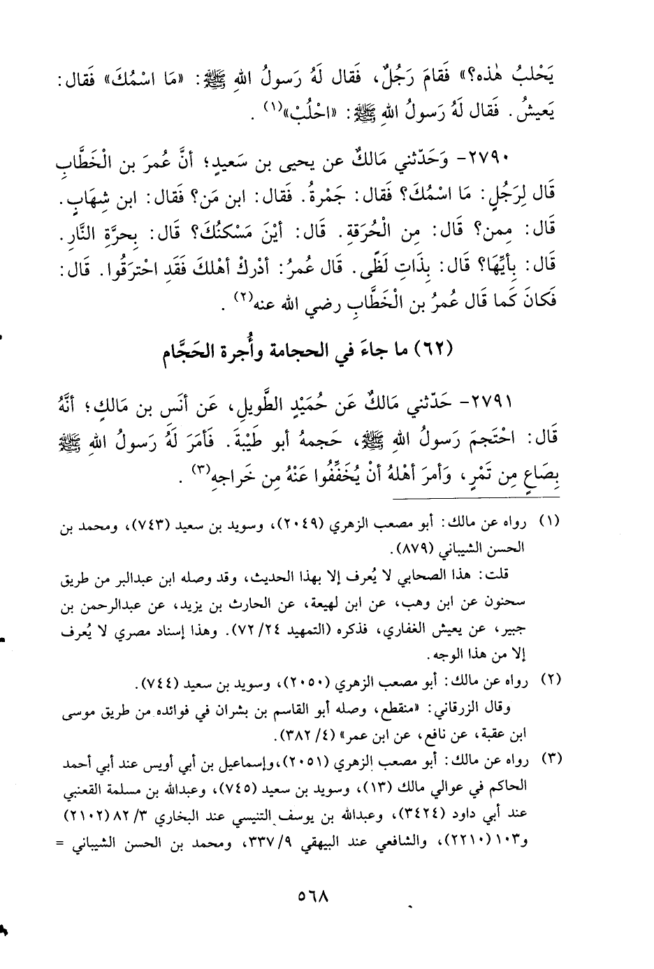 2791 - حَدَّثَنِي مَالِكٌ، عَنْ حُمَيْدٍ الطَّوِيلِ، عَنْ أَنَسِ بْنِ مَالِكٍ، أَنَّهُ قَالَ: احْتَجَمَ رَسُولُ اللهِ صَلى الله عَلَيهِ وَسَلمَ، حَجَمَهُ أَبُو طَيْبَةَ، فَأَمَرَ لَهُ رَسُولُ اللهِ صَلى الله عَلَيهِ وَسَلمَ بِصَاعٍ مِنْ تَمْرٍ، وَأَمَرَ أَهْلَهُ أَنْ يُخَفِّفُوا عَنْهُ مِنْ خَرَاجِهِ.