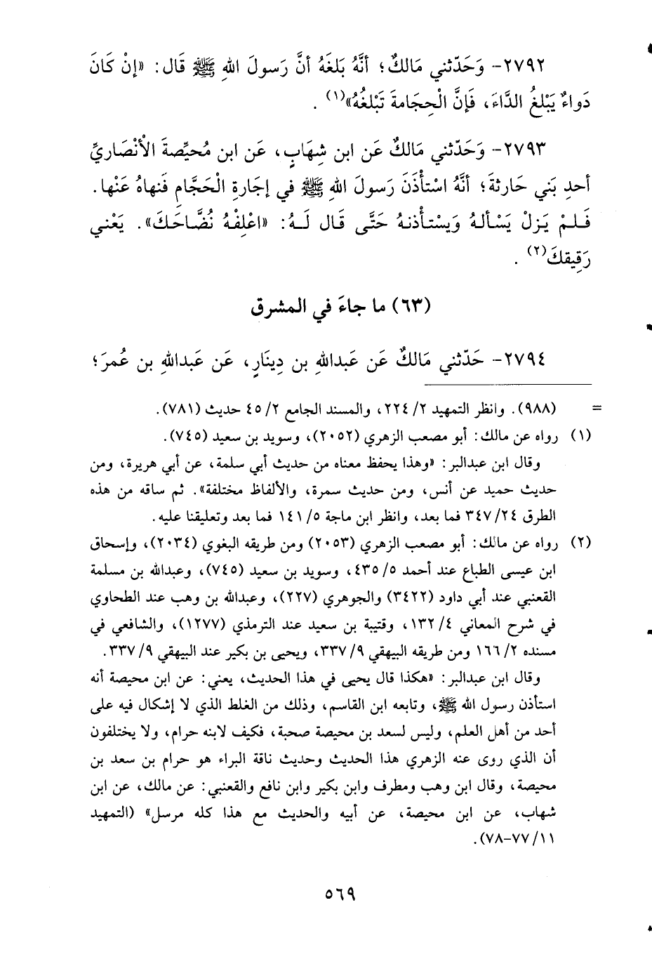 (1) وهو في رواية أَبِي مُصْعَب الزُّهْرِي، للموطأ (2054)، وسُوَيْد بن سَعِيد (746)، وورد في "مسند الموطأ" 481.