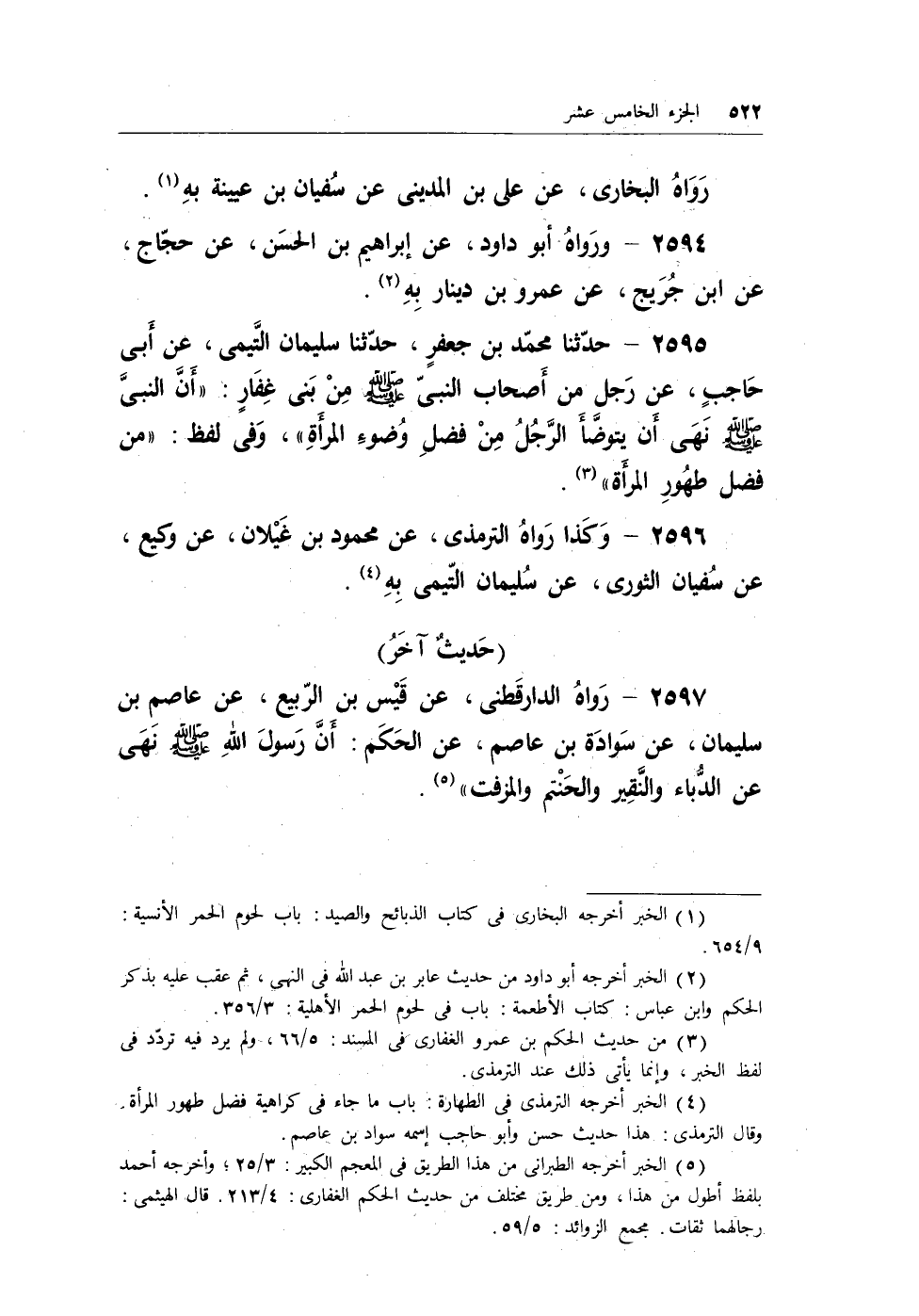 (¬3) الخبر أخرجه الترمذي في الطهارة: باب ماجاء في كراهية فضل طهور المرأة. وقال الترمذي: هذا حديث حسن وأبو حاجب اسمه سواد بن عاصم.
