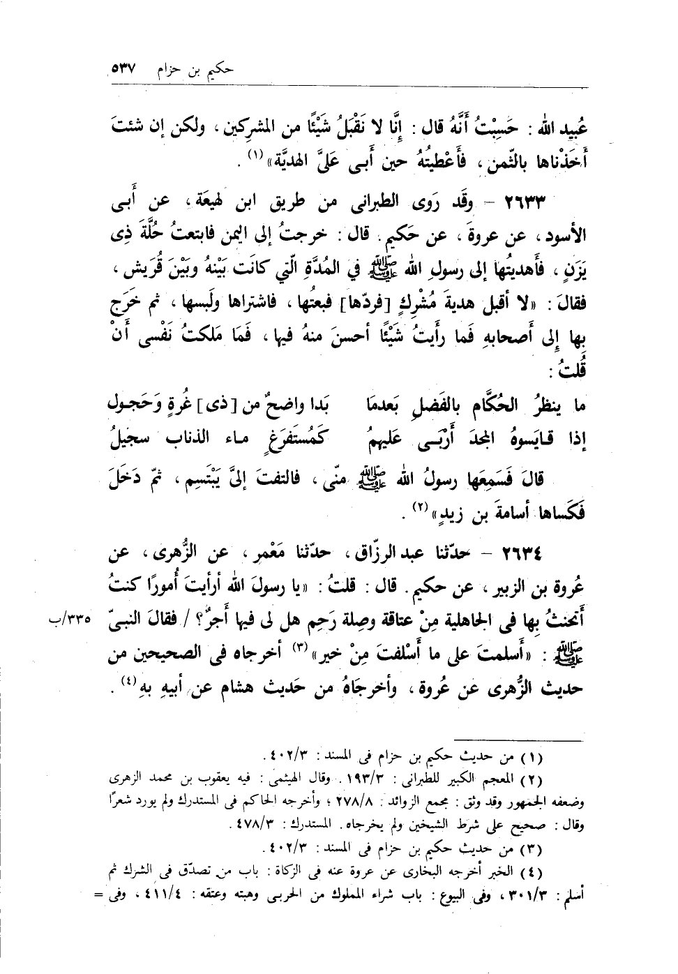 (¬3) الخبر أخرجه البخاري عن عروة عنه في الزكاة: باب من تصدق في الشرك ثم أسلم: 3/301، وفي البيوع: باب شراء المملوك من الحربي وهبته وعتقه: 4/411، وفي الأدب: باب من وصل رحمه في الشرك ثم أسلم: 10/424؛ وعن هشام عن أبيه عنه في العتق: باب عتق المشرك: 5/169.
