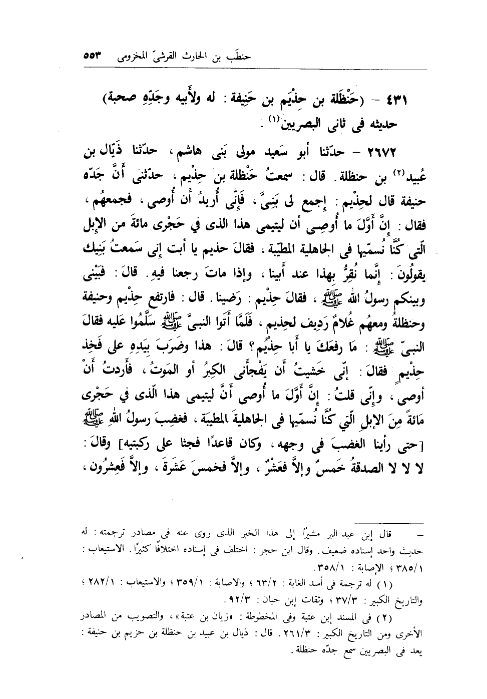 431 - (حنظلة بن حذيم بن حنيفة: له ولأبيه وجده صحبة)