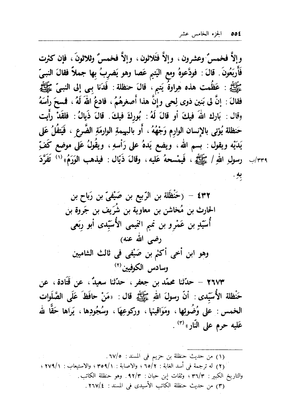 (¬1) له ترجمة في أسد الغابة: 2/65؛ والإصابة: 1/359؛ والاستيعاب: 1/279؛ والتاريخ الكبير: 3/36؛ وثقات ابن حبان: 3/92. وهو حنظلة الكاتب.