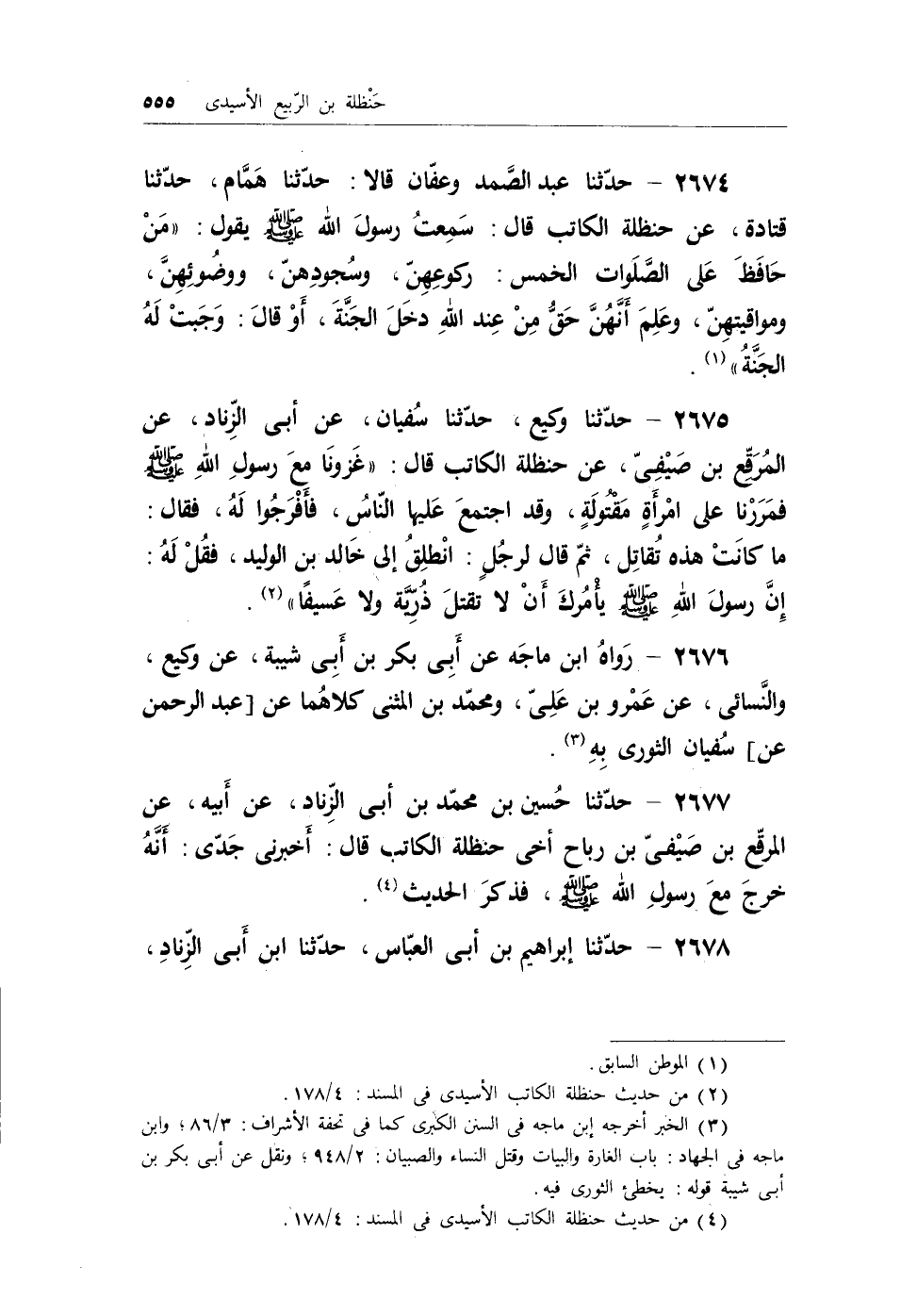 (¬4) من حديث حنظلة الكاتب الأسيدي في المسند: 4/178.