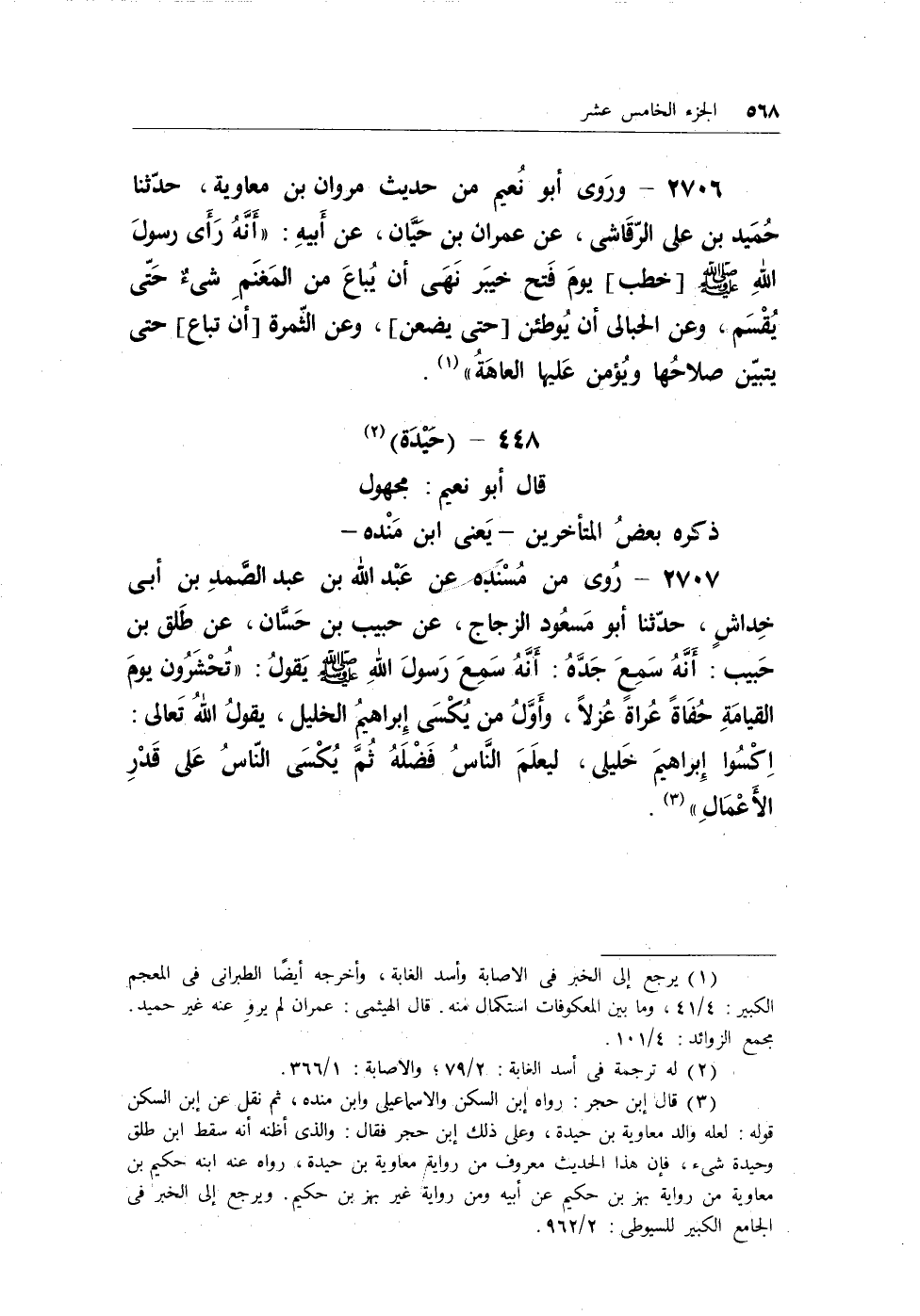(¬1) يرجع إلى الخبر في الإصابة وأسد الغابة، وأخرجه أيضاً الطبراني في المعجم الكبير: 4/41، وما بين المعكوفات استكمال منه. قال الهيثمي: عمران لم يروِ عنه غير حميد. مجمع الزوائد: 4/101.